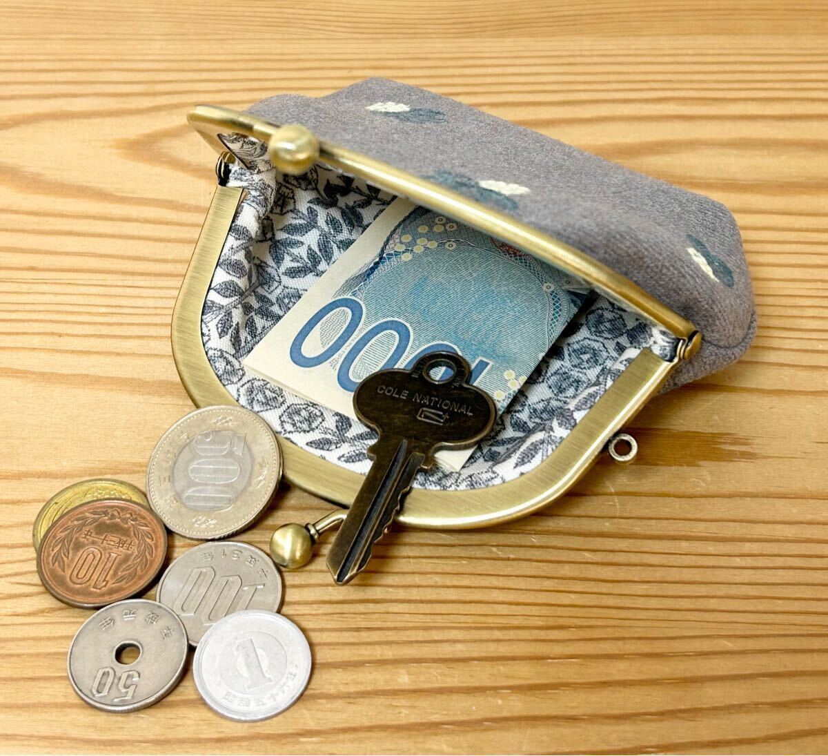 お財布サイズのアーチ型がま口ポーチです( ´∀`)♪