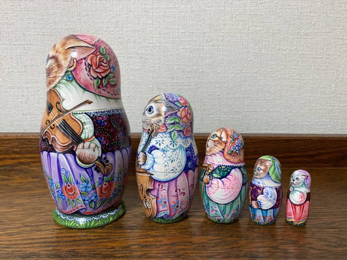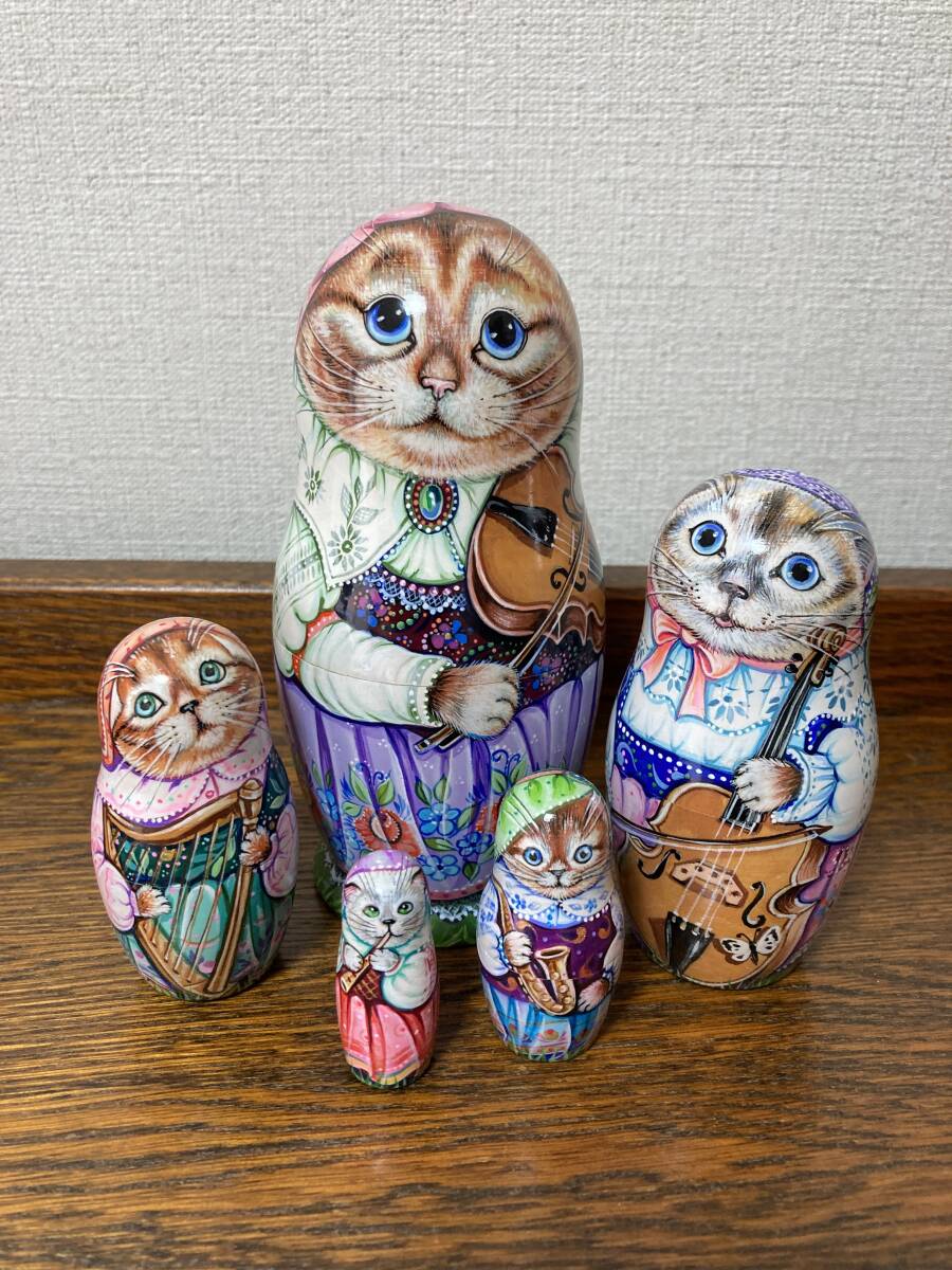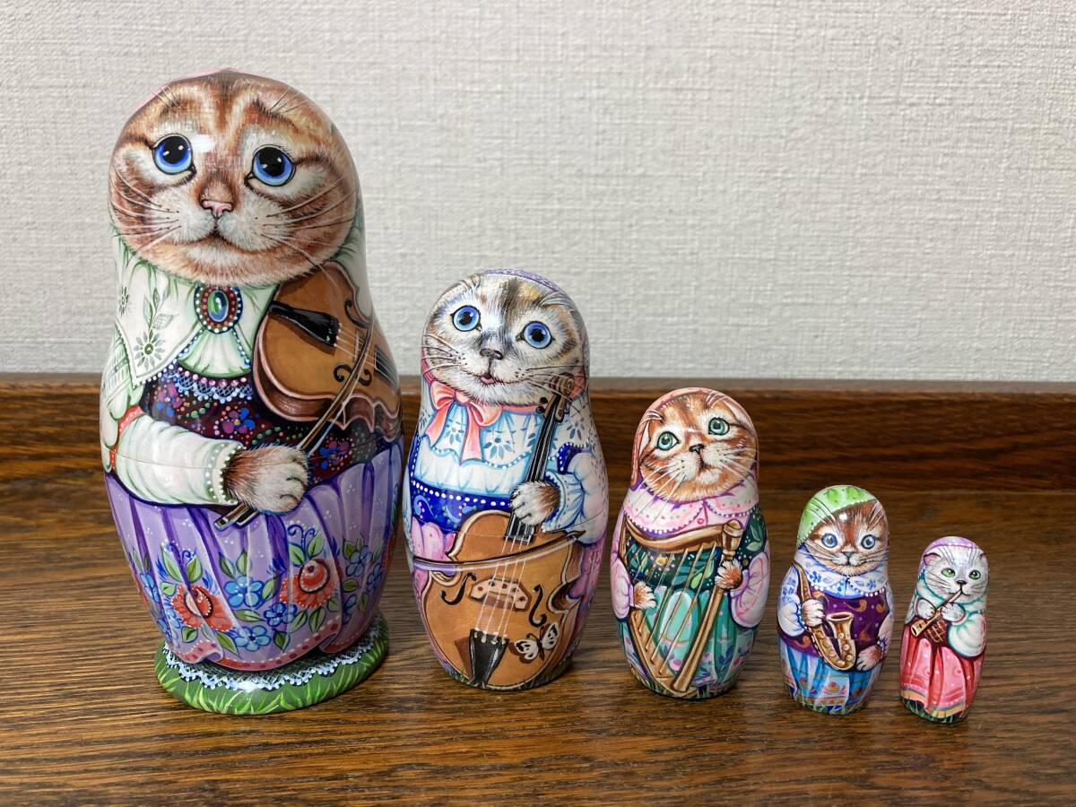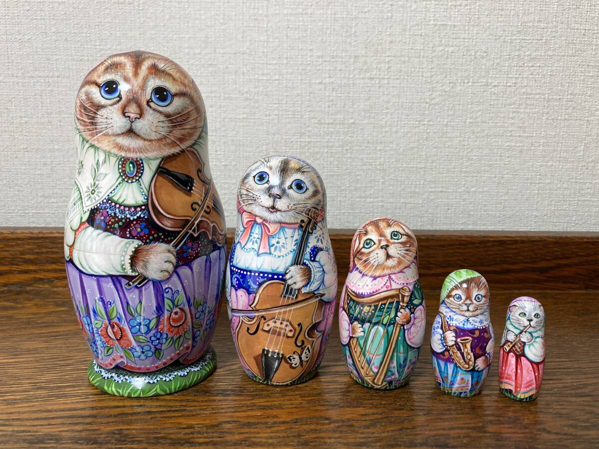 ロシア雑貨☆猫マトリョーシカ『オーケストラ』Orchestraミラ作バイオリン♪