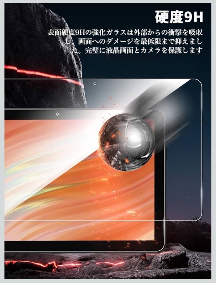 【高硬度9H ・飛散防止】日本旭硝子材料を使用し、沖撃に強く、落下、摩擦、沖撃でも簡単には割れません。沖撃を最小限に抑え、画面の破損を抑え、画面をスクラッチから保護します。