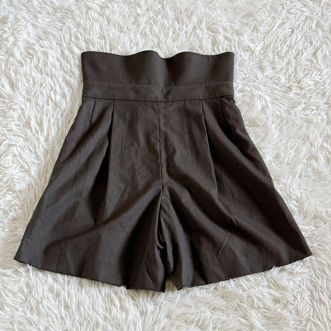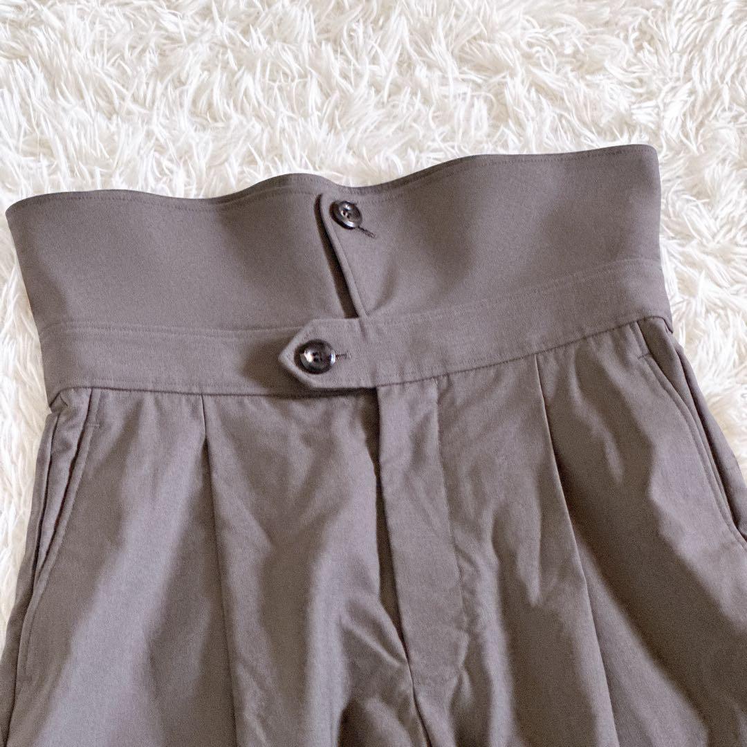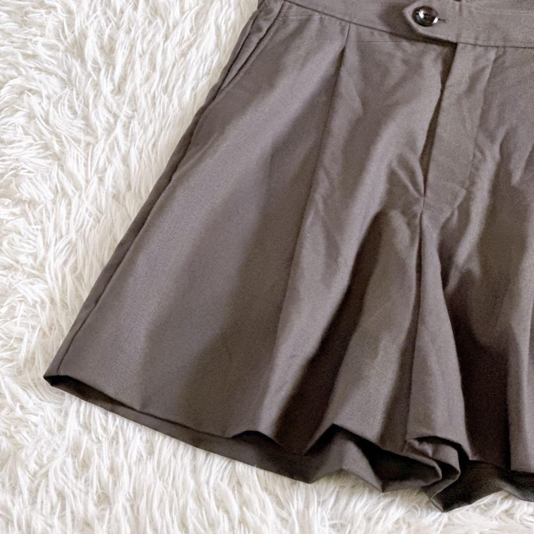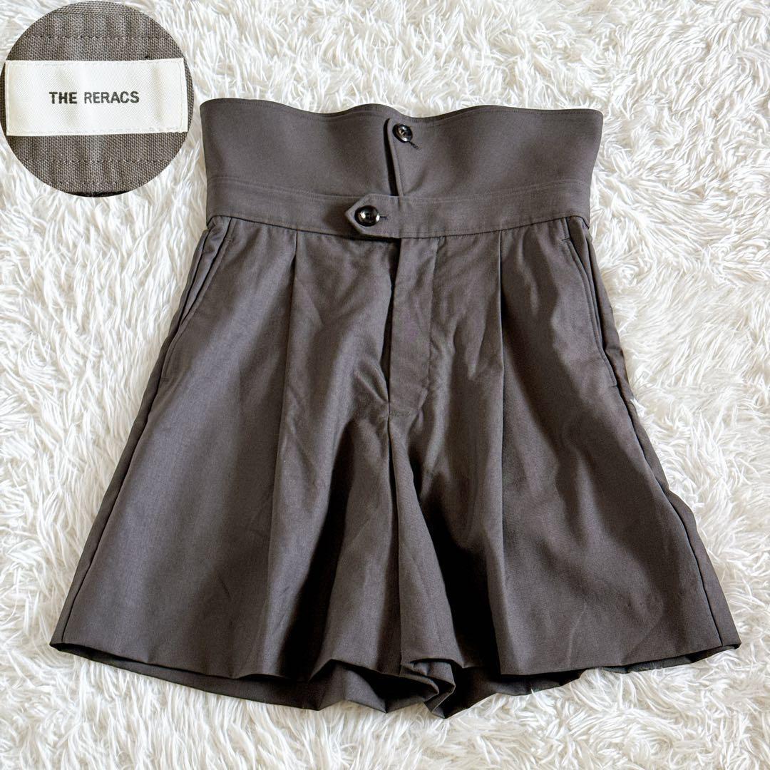 THE RERACS ザリラクス ショートパンツ ワイドショーツ ハイウエスト フラップデザイン ウール キュプラ モード フレア シルエット 美脚 パターン サンプル品 グレージュ系 レディース 春夏 黒茶系 高級感 立体裁断