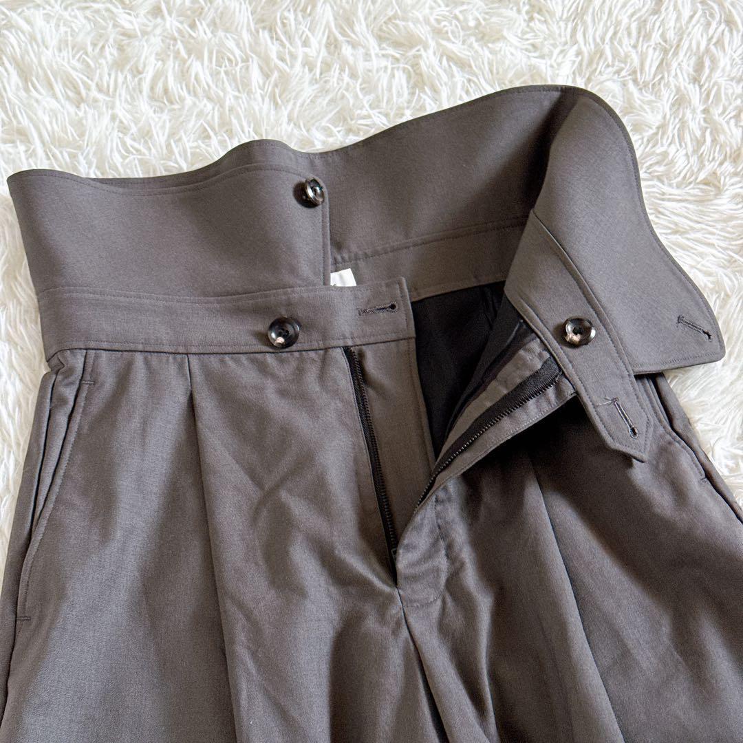 トロピカルウール素材を使用した美しいフレアシルエットが魅力で、立体感のあるウエスト周りはトップスインでもアウトでもスタイリング映えします。