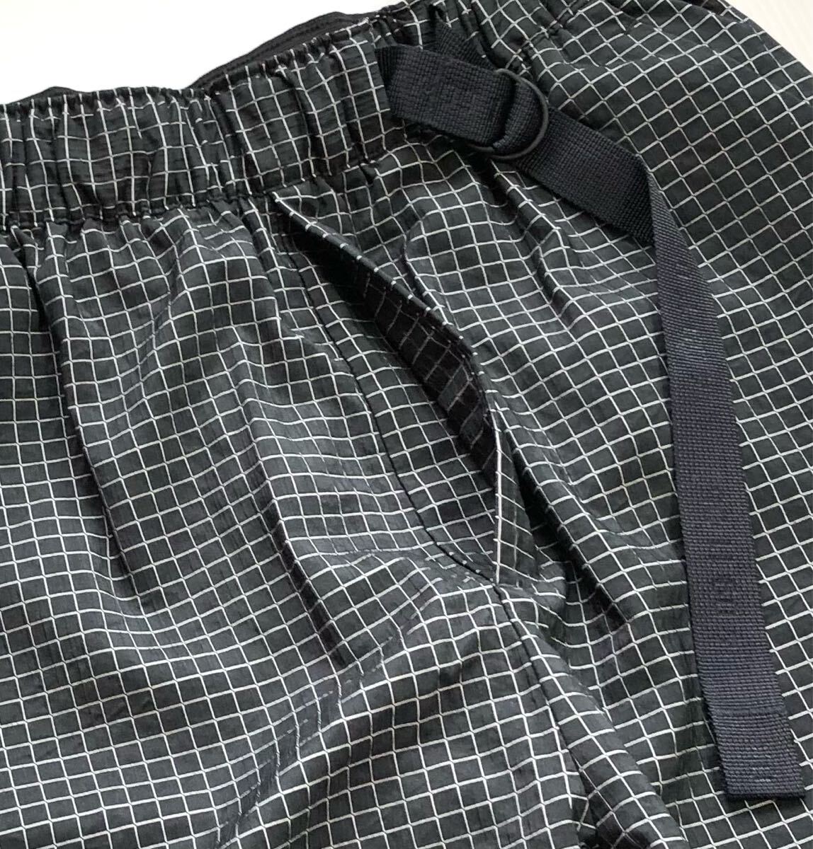 現代的でデジタルなグリッド(格子)柄が特徴的なショートパンツ。