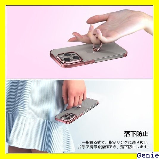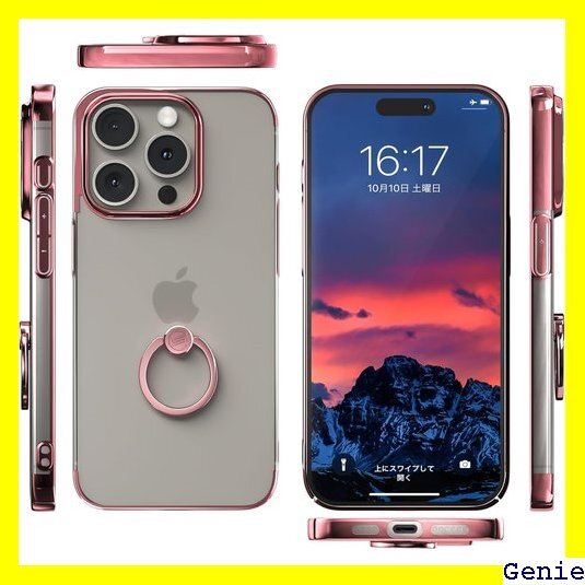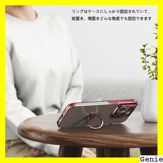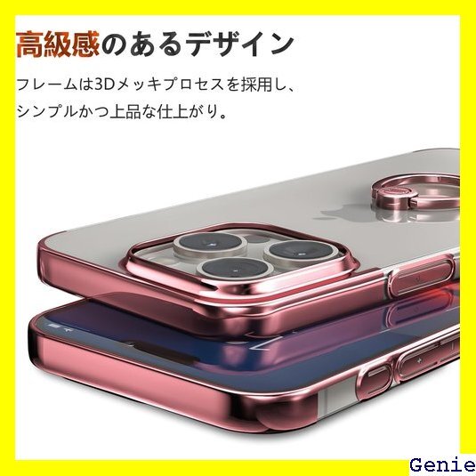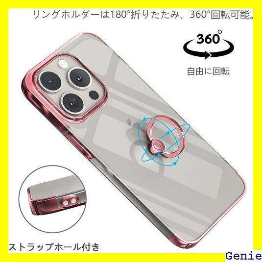 S Segoi iPhone 15 Pro ケース リング付き スタンド機能 メッキ加工 透明 PC 落下防止 薄型 軽量 一体型 おしゃれ 全面保護カバー アイフォン15Pro リング ケース 6.1インチ iPhone 15 Pro ローズピンク 30