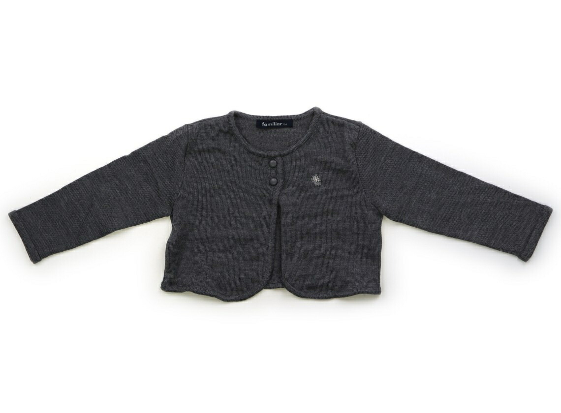 ウールとアクリル混合ニットカーディガンです。少し毛羽立ちと胸にシミ汚れが見受けられます。