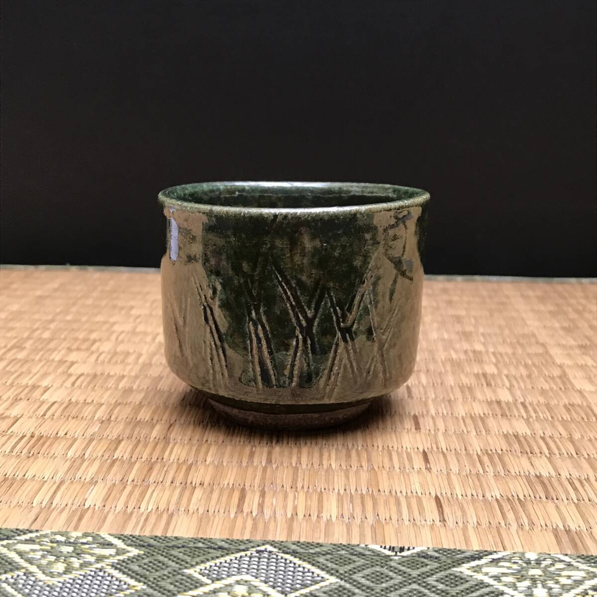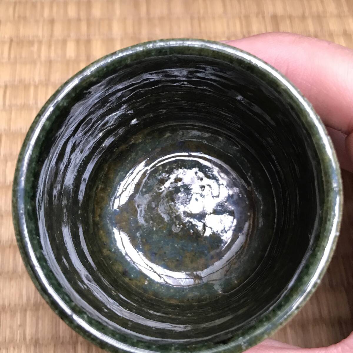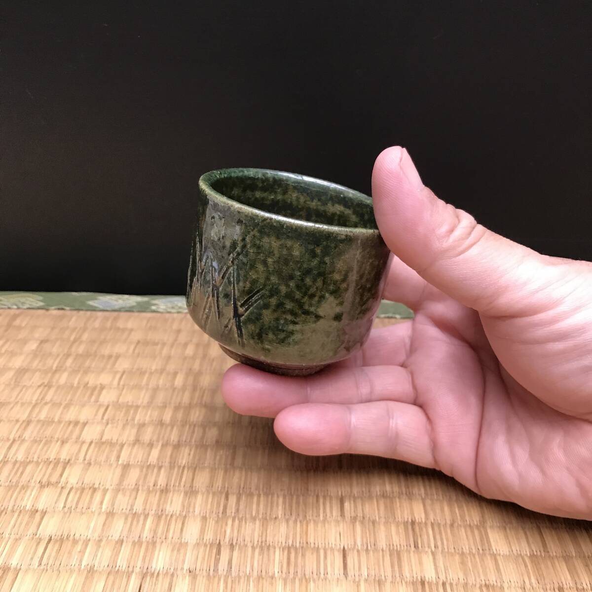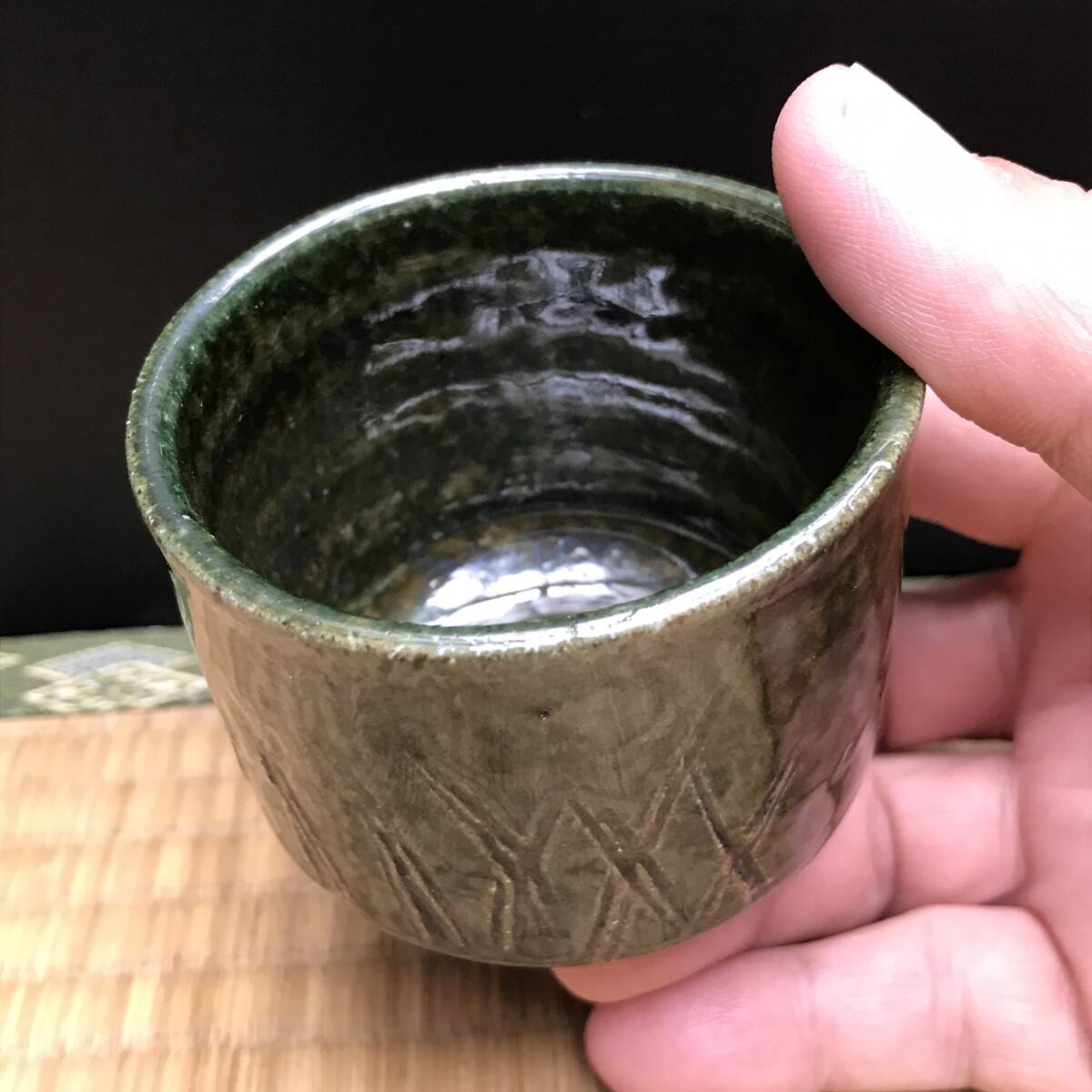 青織部のぐい呑み(ロ)魯山人銘印?酒器 猪口 小鉢 盃 杯 珍味入れ(R70614_A)