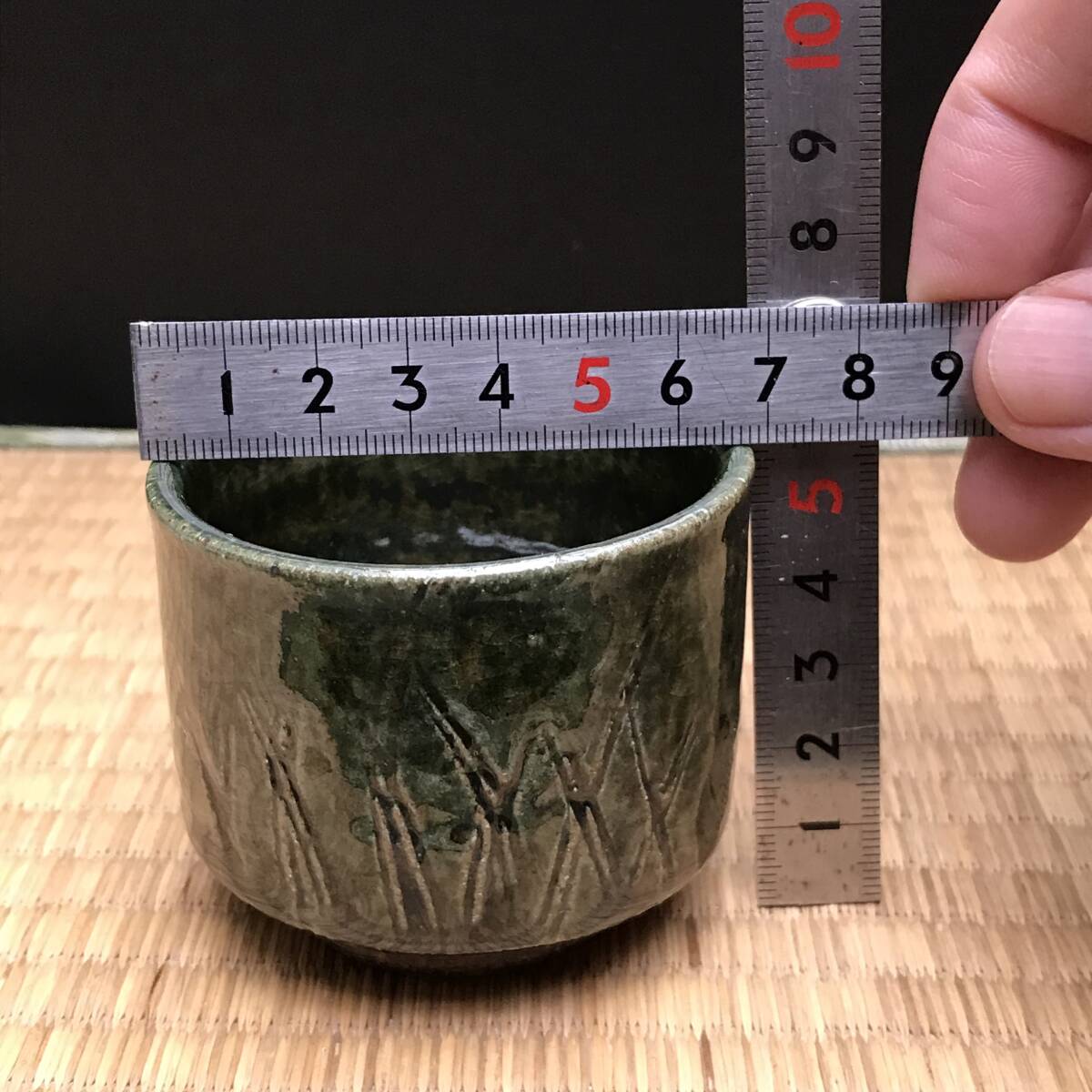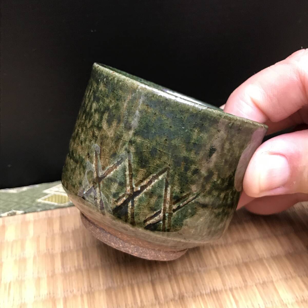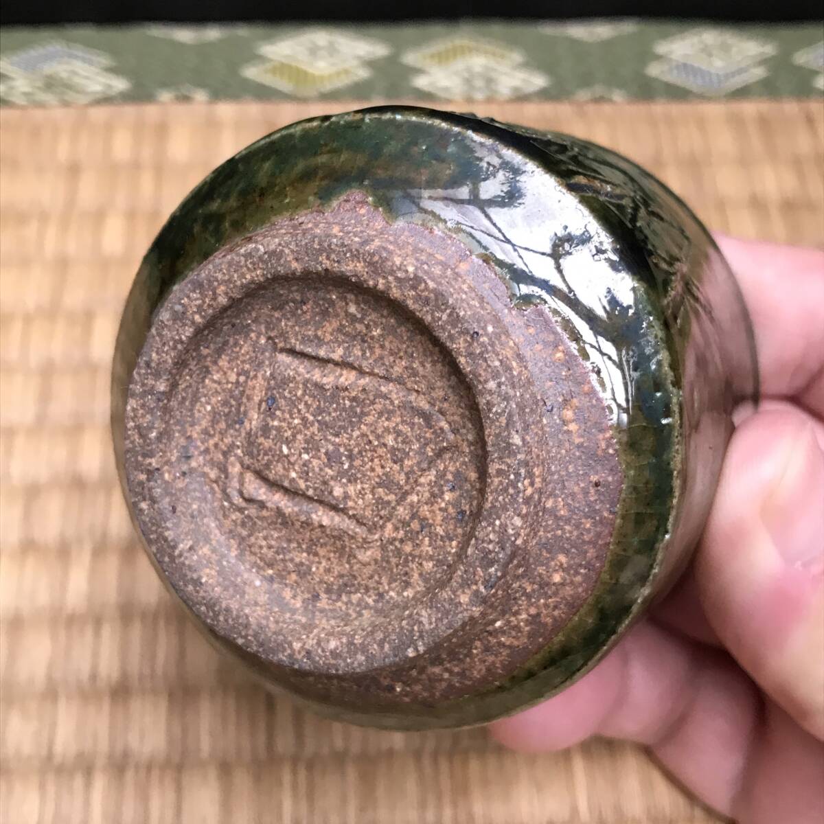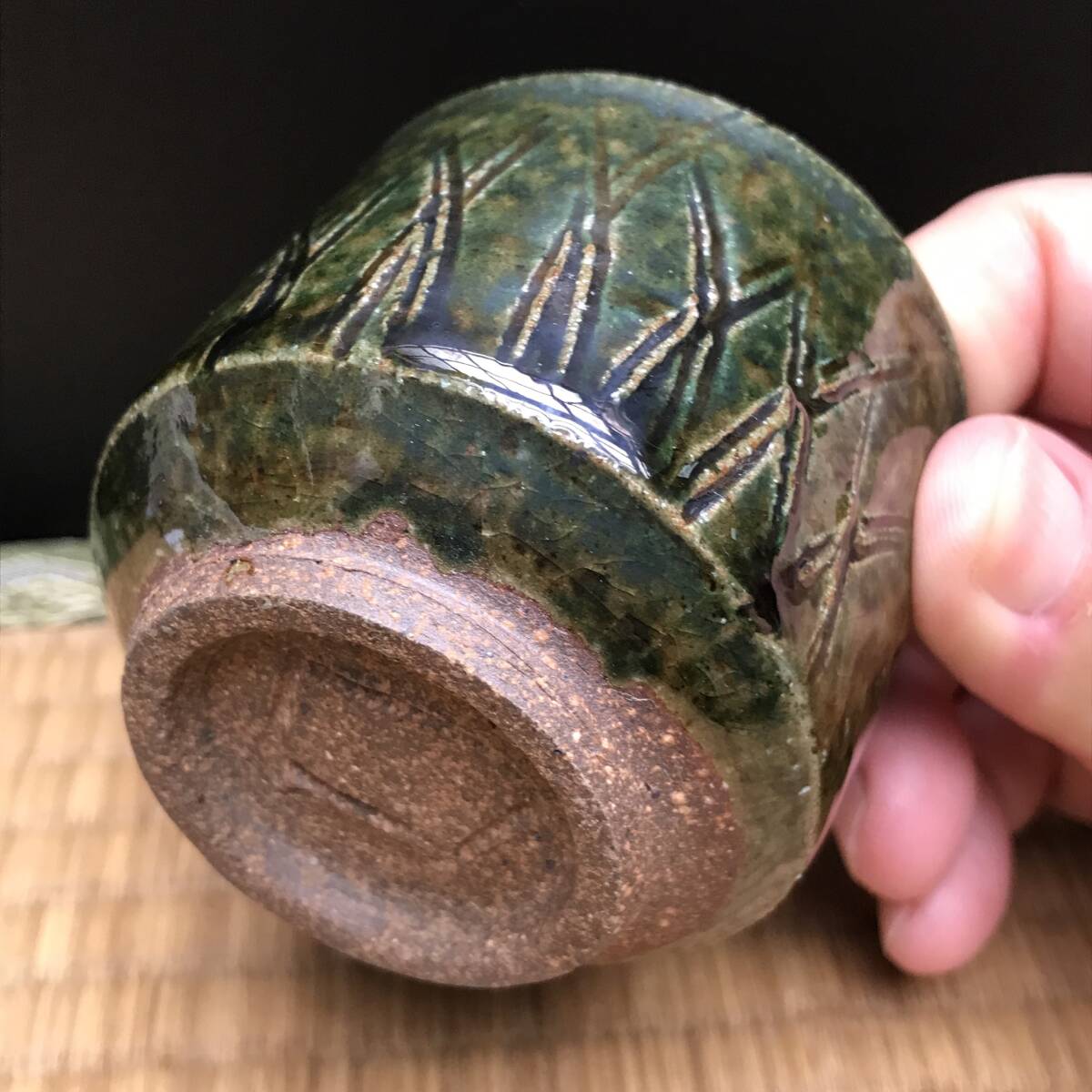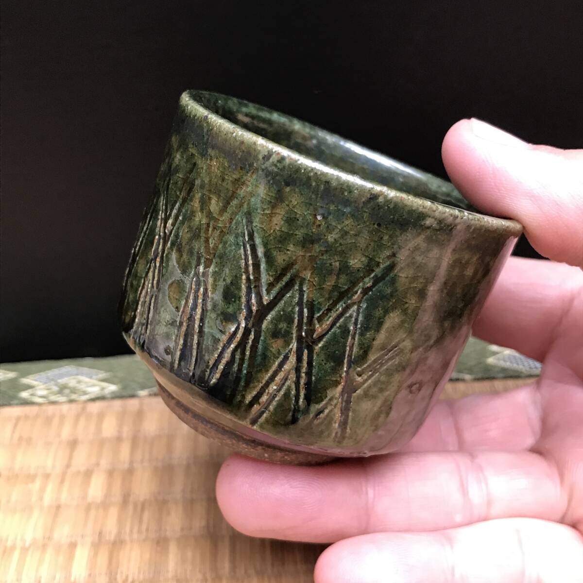 青織部のぐい呑み(ロ)魯山人銘印?酒器 猪口 小鉢 盃 杯 珍味入れ(R70614_A)