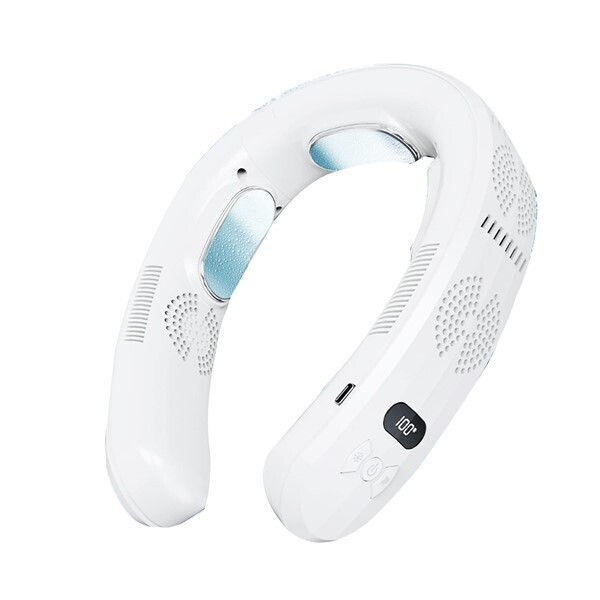 ネッククーラーと首掛け扇風機のぶつかり合い、「エアコン」を携帯するような、いつでもどこでも涼しさを満喫し、この夏の必需品になれます。従来の二つの冷却プレートより、更に進化した三つの冷却プレートが搭載しております。左右側冷却だけでなく、首元冷却ブレードも付いています。従来の製品より冷感もっと強くて、手軽に涼しいが続き、涼しい暑い夏を乗り切れます。 さらに、プレートが冷暖両用で、効果的に冷却 加熱が可能のため、暑い時はひんやりクール、寒い時はじんわりホット。頸部の温度を調整することで、体全体快適に!