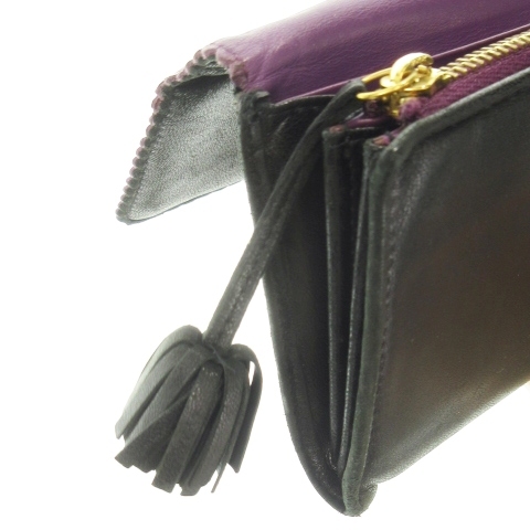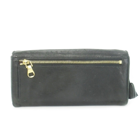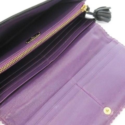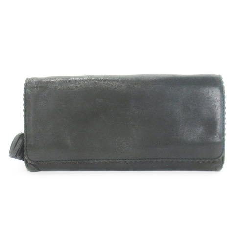 ロエベ LOEWE 長財布 ロングウォレット 小銭入れあり アナグラム型押し スカラップ タッセル 黒 ブラック /MN10 ■GY18 レディース