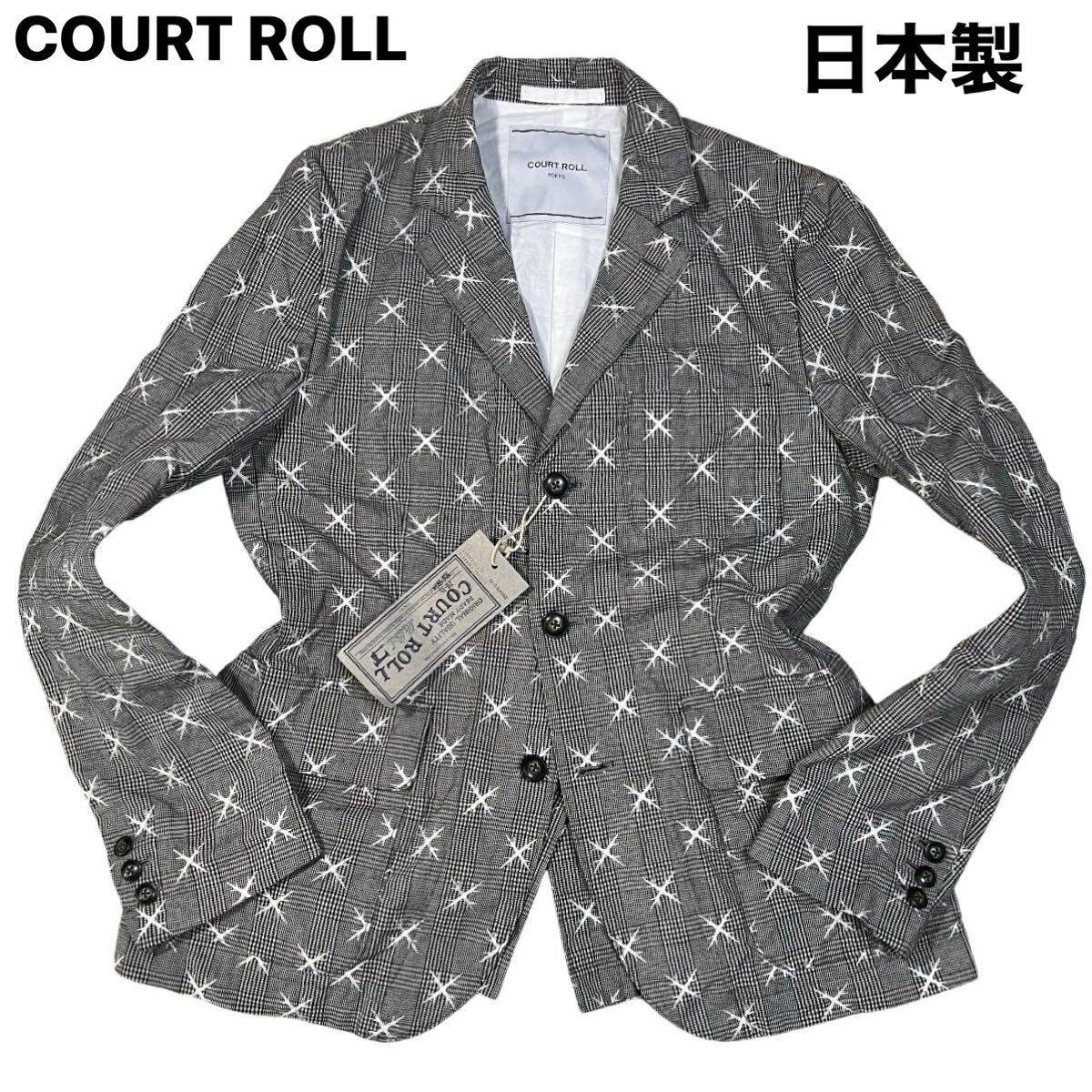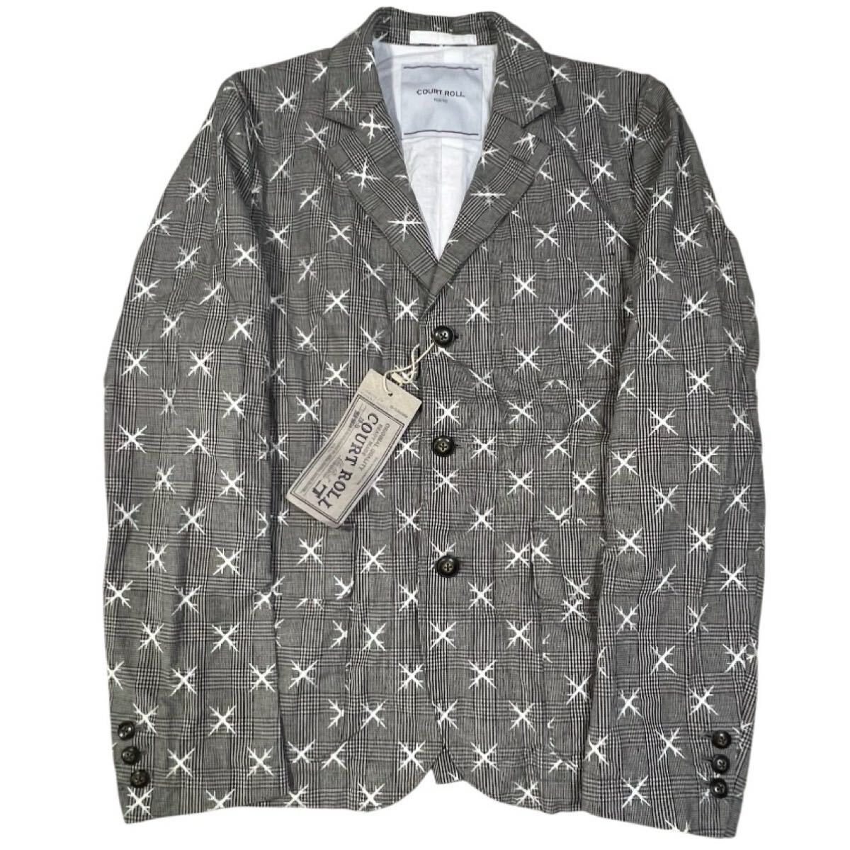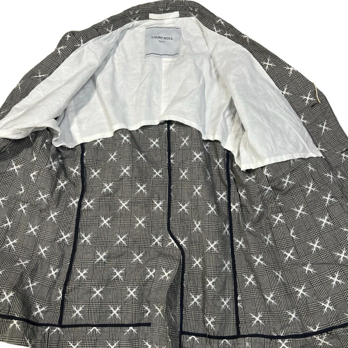 ● 未使用品/定価42,000円+税 COURT ROLL サマーテーラードジャケット/グレンチェッククロス刺繍総柄/グレー袖本開き/ブレザー2 M程 送料410円