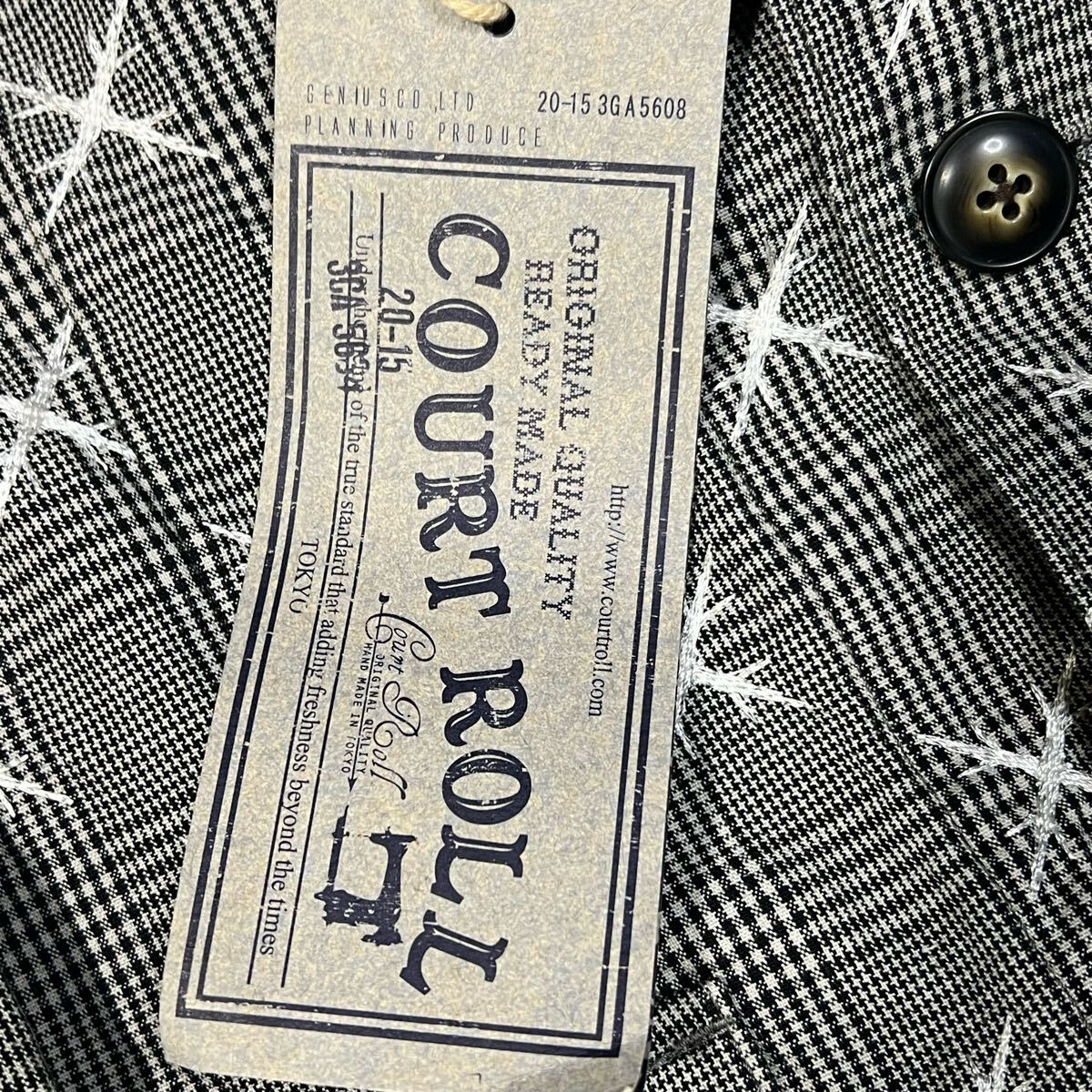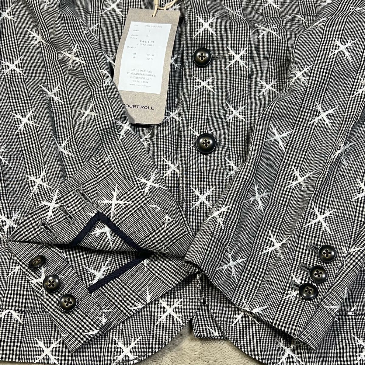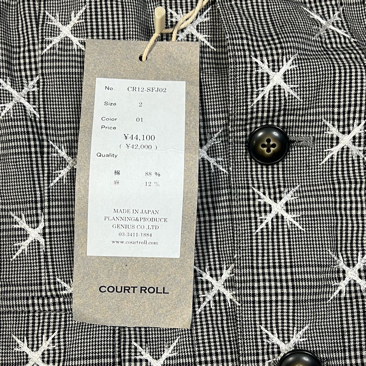 ● 未使用品/定価42,000円+税 COURT ROLL サマーテーラードジャケット/グレンチェッククロス刺繍総柄/グレー袖本開き/ブレザー2 M程 送料410円