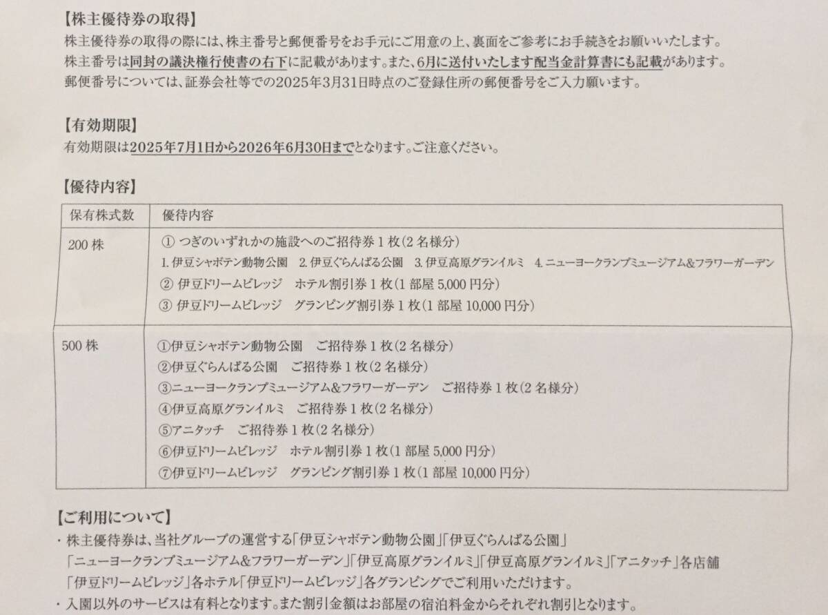 最新!伊豆シャボテンリゾート 株主電子優待券・全項目(500株以上ランク)・2025年7月1日~2026年6月30日・送料無料