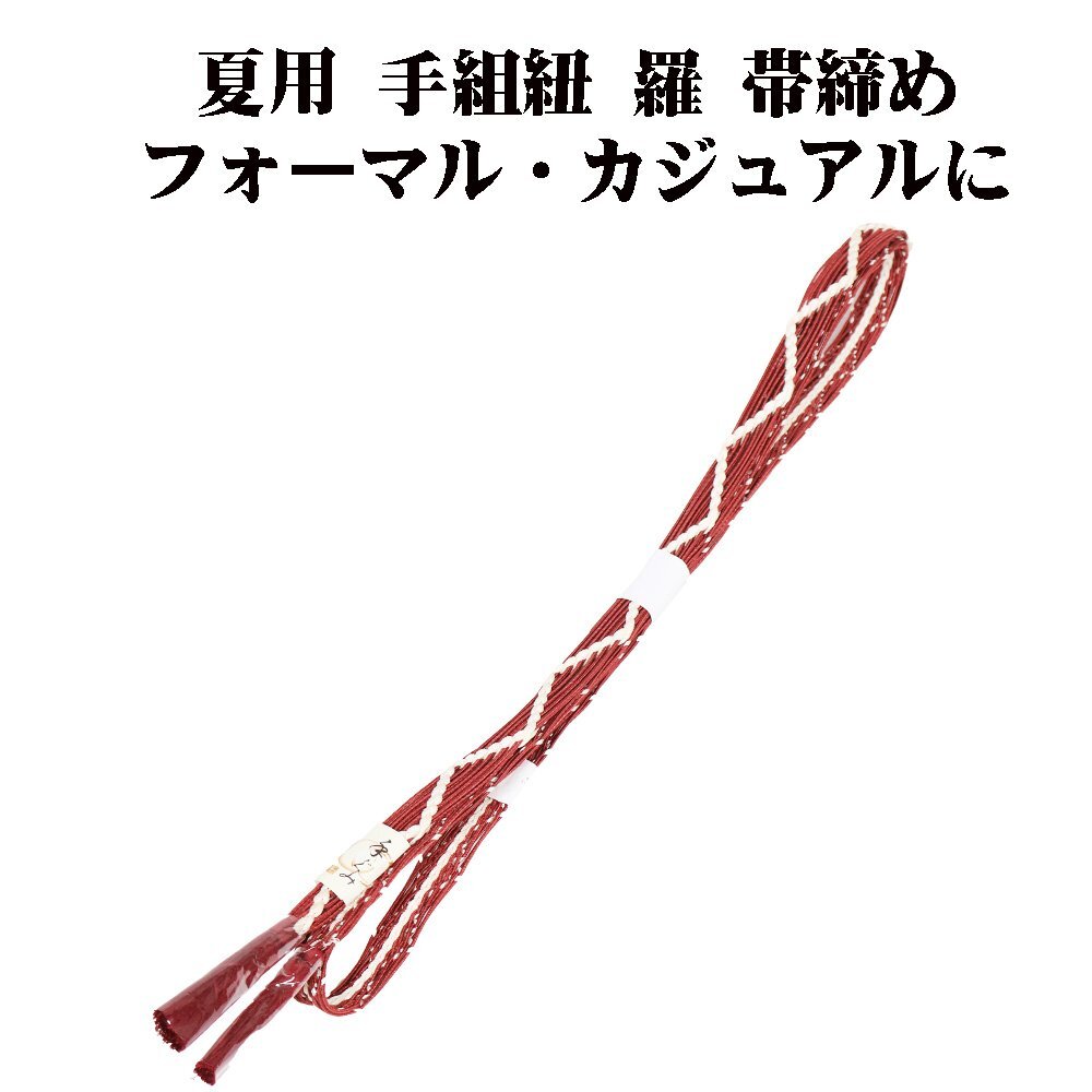 | 帯締め | 夏用 手組紐 帯締め 新品 羅 赤茶紫 刺繍・よろけ縞・裏縦縞 |