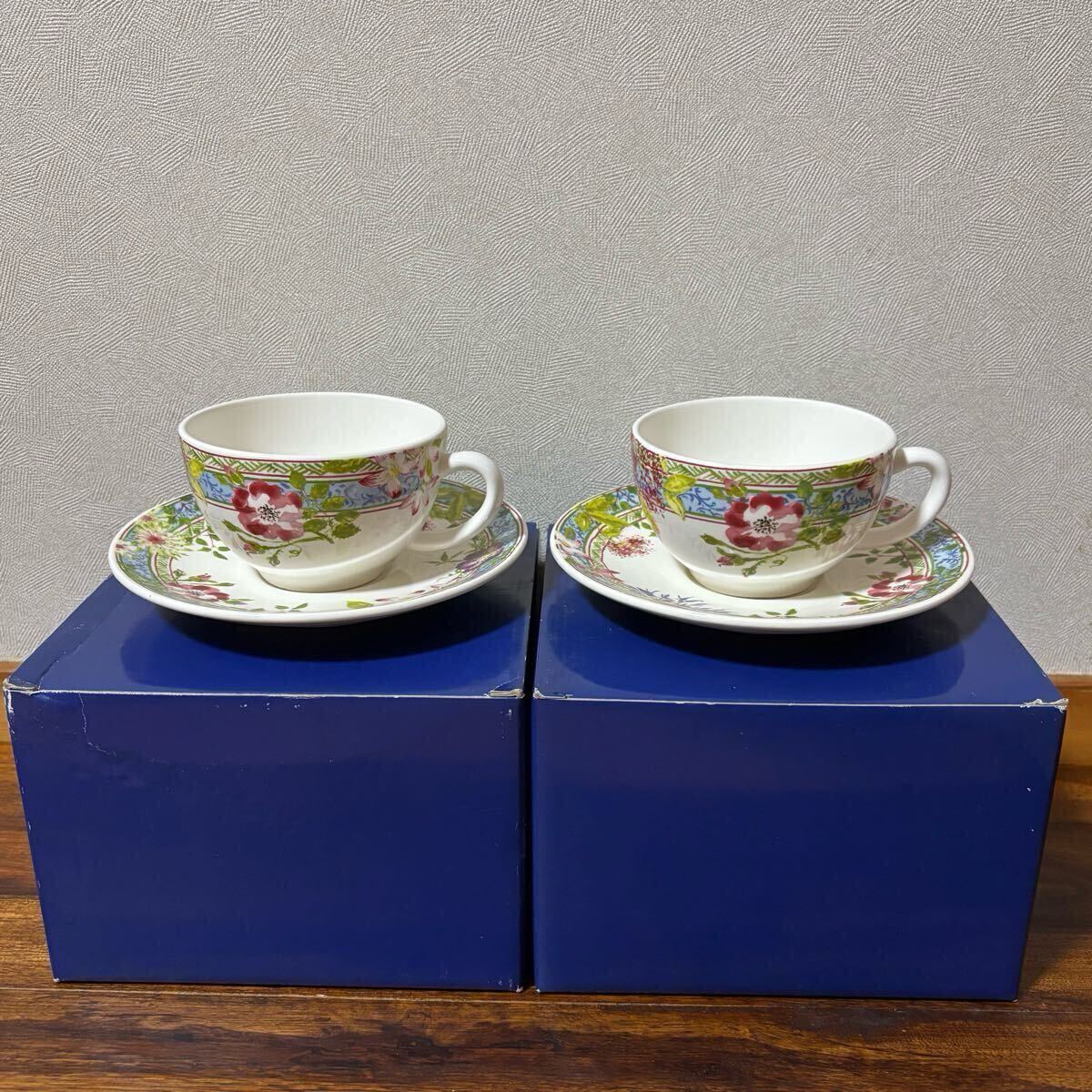 未使用 gien ジアン ミルフルール ティー カップ&ソーサー 2客セット ペア 箱入り フランス 陶磁器 送料無料