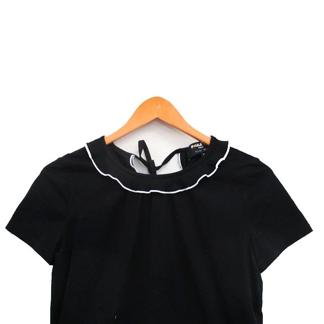 ポールカ PAULE KA カットソー Tシャツ 半袖 フリル コットン シンプル M ブラック 黒 /KT24 レディース