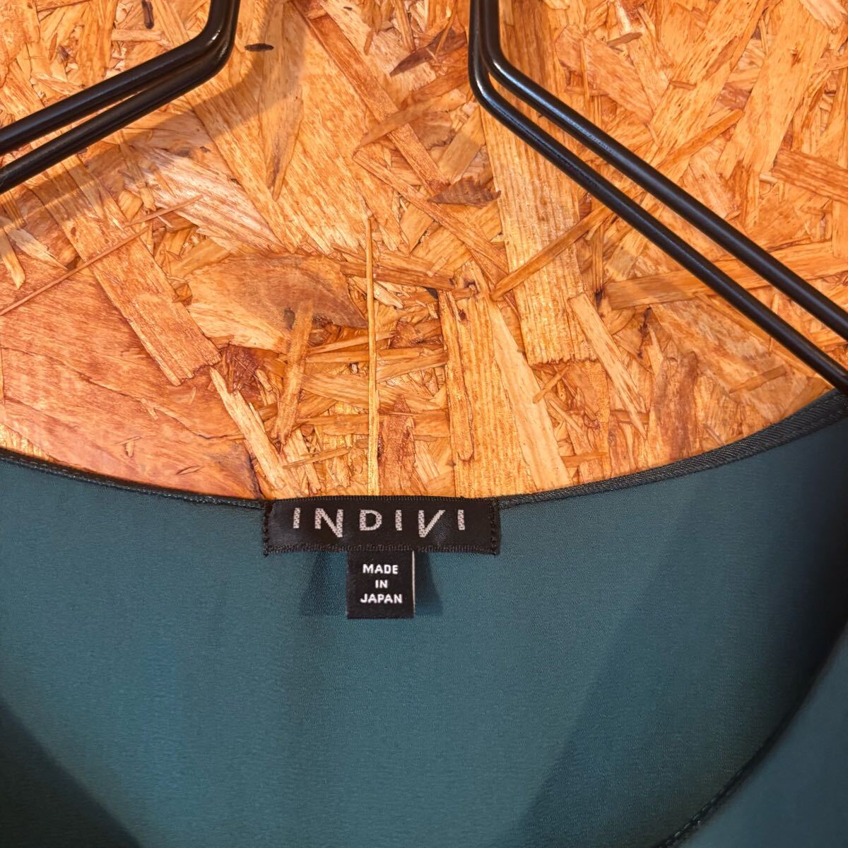 美品 INDIVI 日本製 トップス 半袖カットソー グリーン レディース トップス サラサラ生地 4525