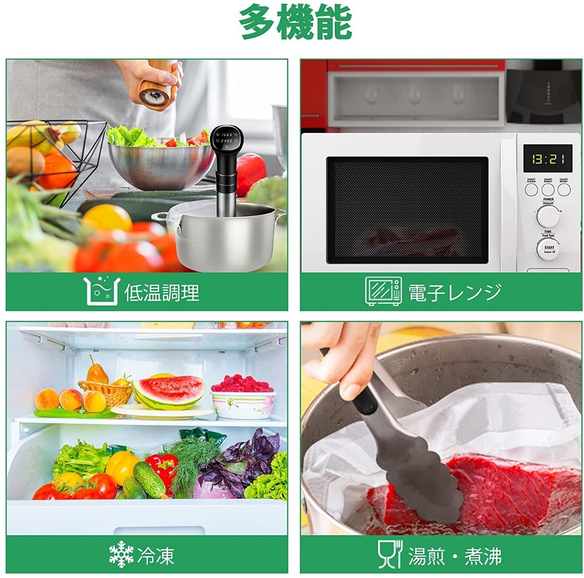 【多用途】 野菜、ドライフルーツ、チーズ、紅茶、肉、調理済みの食べ物、穀物などで広く使用され、あなたの料理の腕をより完璧にします!家庭用だけではなく、業務用にも適用可能です。日本料理店・レストラン・ホテルの厨房・精肉店・寿司店・鮮魚店・ラーメン店・和菓子店等食品以外でも、試供品の作成・研究所でサンプル保存・病院(薬品保管)・小型機械及び付属品の防湿/長期保存に、いろんな用途にご利用ください。
