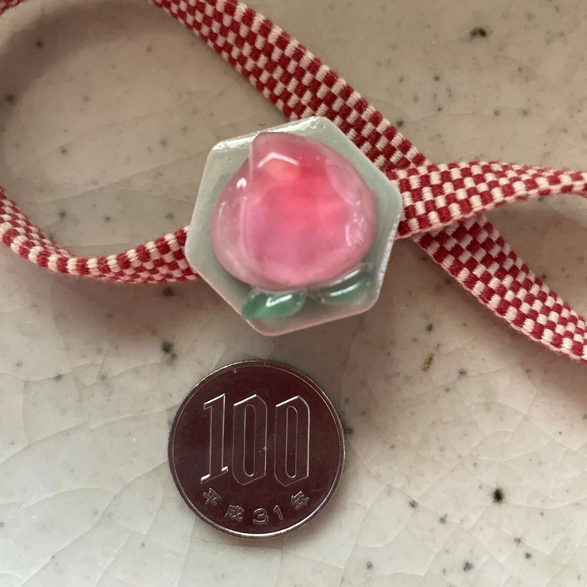 みずみずしい水蜜桃の帯留めです。