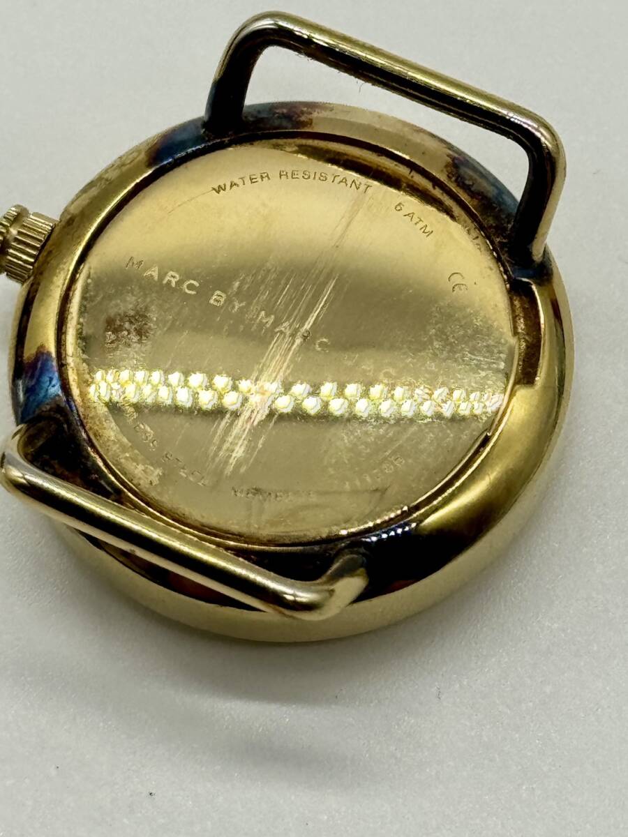 【商品詳細】 MARC BY MARC JACOBS マークバイマークジェイコブス 白文字盤 型番:MBM8575 腕回り:約18cm ケース幅:約2.6cm(リューズ除く) 状態:風防にキズがございます。ベゼル、ベルト、裏蓋にキズ、スレ等ございます。ベルトにキズ、ダメージ有。 キズや汚れの感じ方は人それぞれだと思いますので細かい商品の状態は画像にてご確認ください。 撮影状況やご使用のパソコン環境により、実物と多少色が異なる場合がございます。 画像で判断できない場合は質問をしてください。 私の分かる範囲で答えさせていただきます。 プチプチ等を使った簡易梱包となりますので神経質な方は入札をご遠慮ください。 出来る範囲で対策はしますがポスト投函になる発送を希望の場合は雨天時に破損、水濡れ等のリスクがございます。 トラブル回避の為、悪い評価が多数ある方は入札されても削除させて頂く場合がございます。 取り扱っている物はあくまで中古品です。 中古品の特性を理解したうえで入札をお願いいたします。 すり替え防止等の理由から返品には対応しておりません。 土日・祝日を挟む場合は発送が遅れる場合がございます。 長くなりましたが、この取引がお互いに有意義なものになるよう祈っております。 R706-71 |