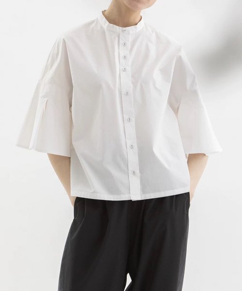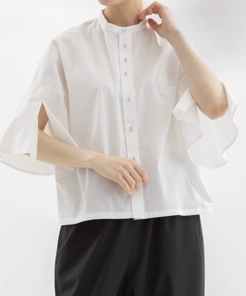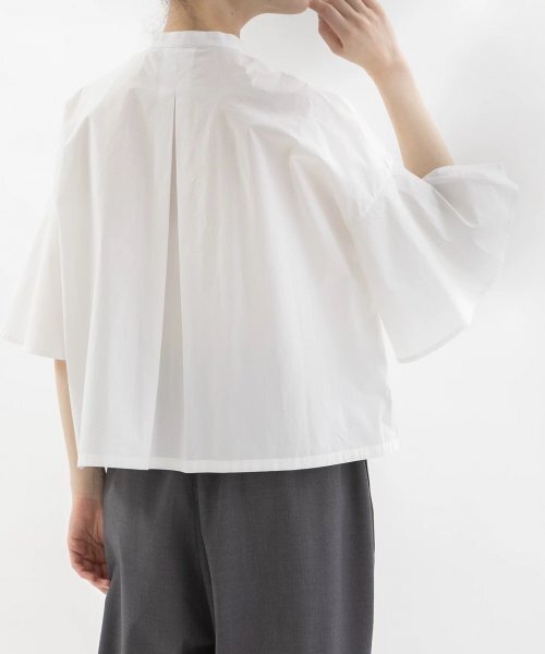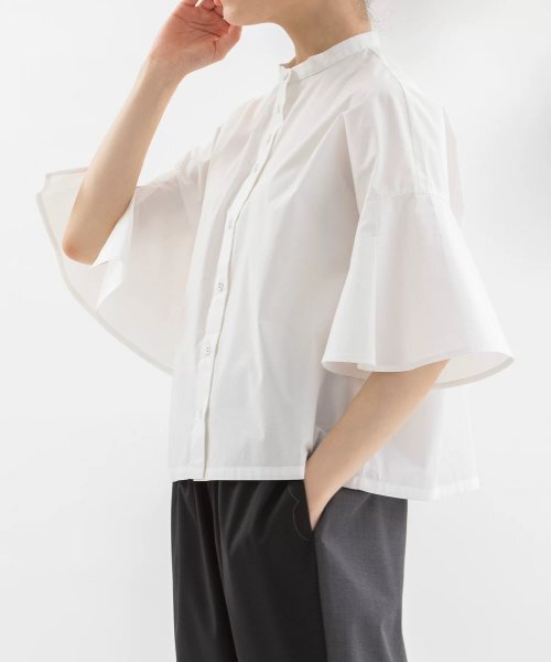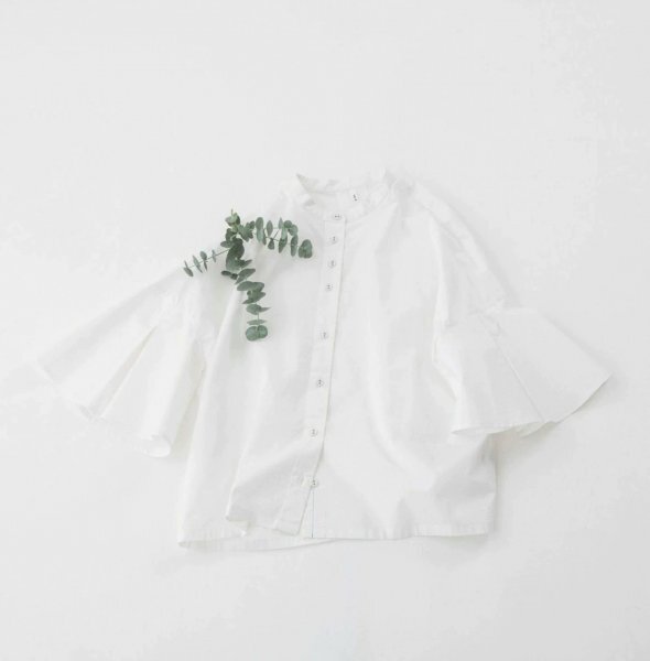 ns 0706 トップス チュニック ワイシャツ 袖広がる 大人可愛 半袖 フリーサイズ ナチュラル ゆったり 綿100% ホワイト