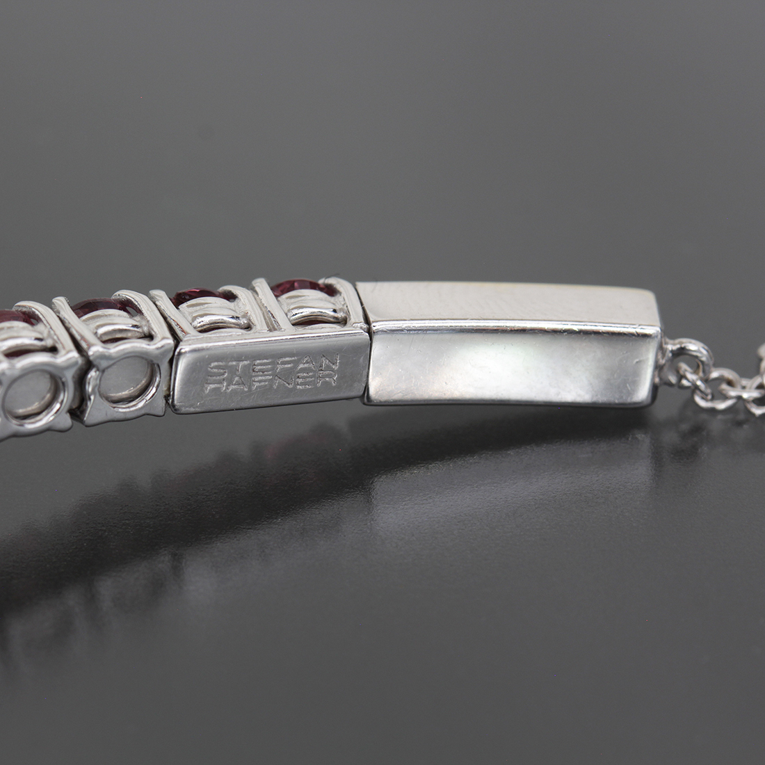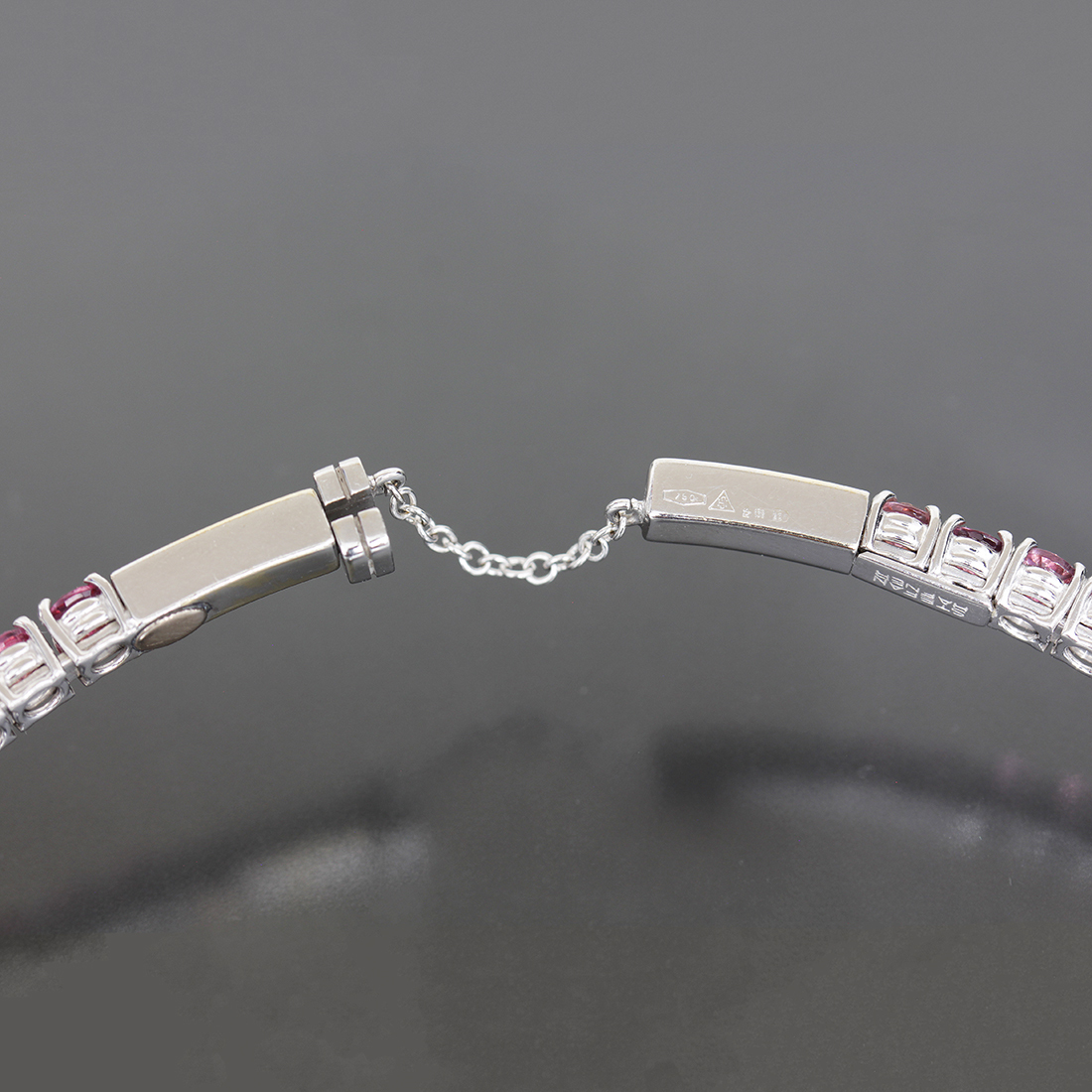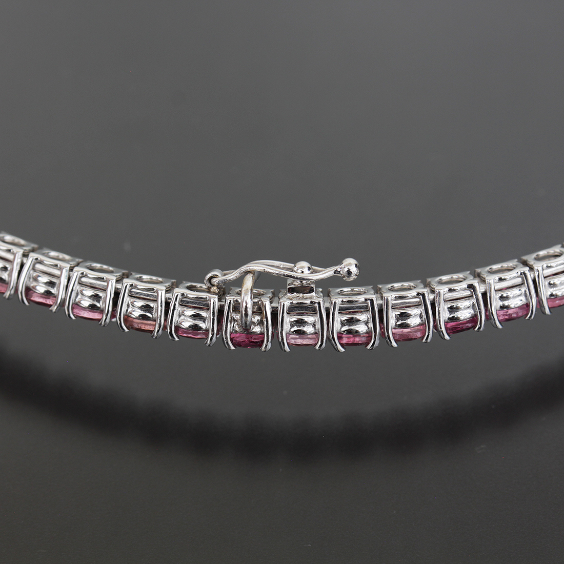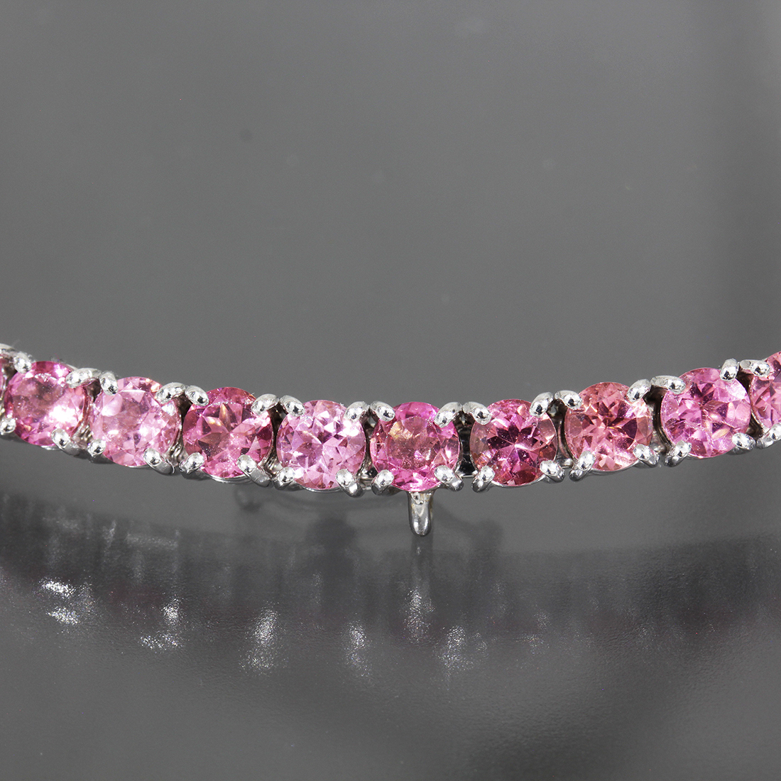 ■ ステファンハフナーのピンクのカラーストーンをぐるっと一周贅沢に使用したテニスネックレスです。画像のように正面部分にトップをかける部分とストッパーがございます。ホワイトゴールドとカラーストーンの美しい輝きが首元に彩りを与えます。ぜひご検討下さい。