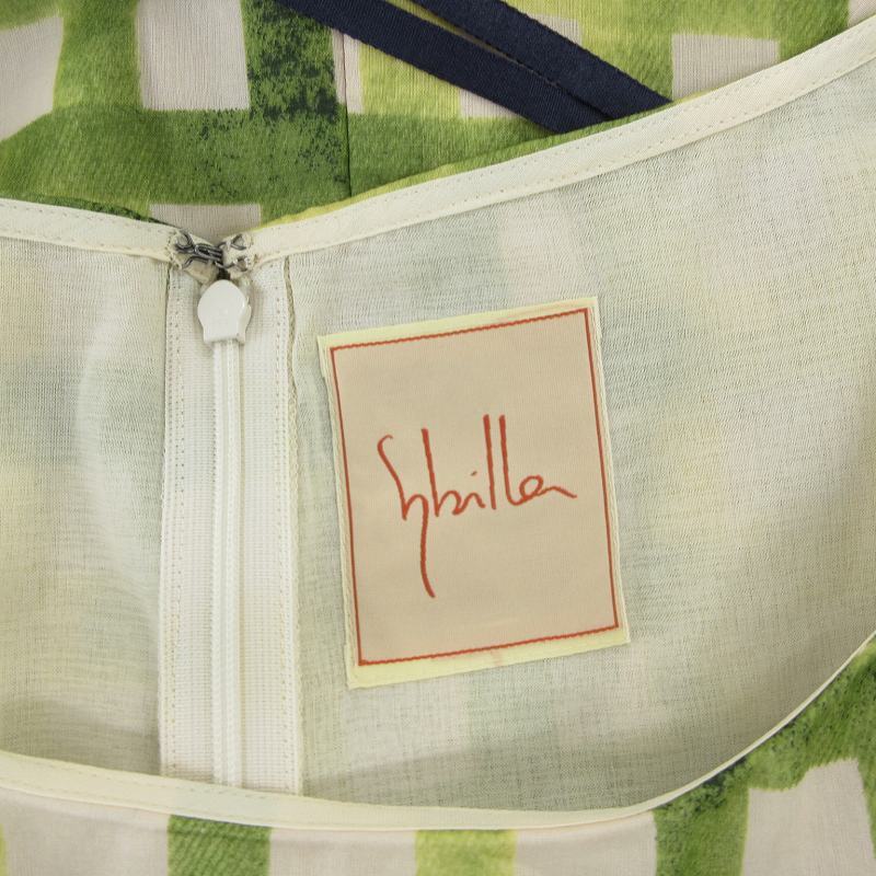 シビラ SYBILLA ワンピース フロントリボン チェック ロング 半袖 M 緑 グリーン /FF レディース