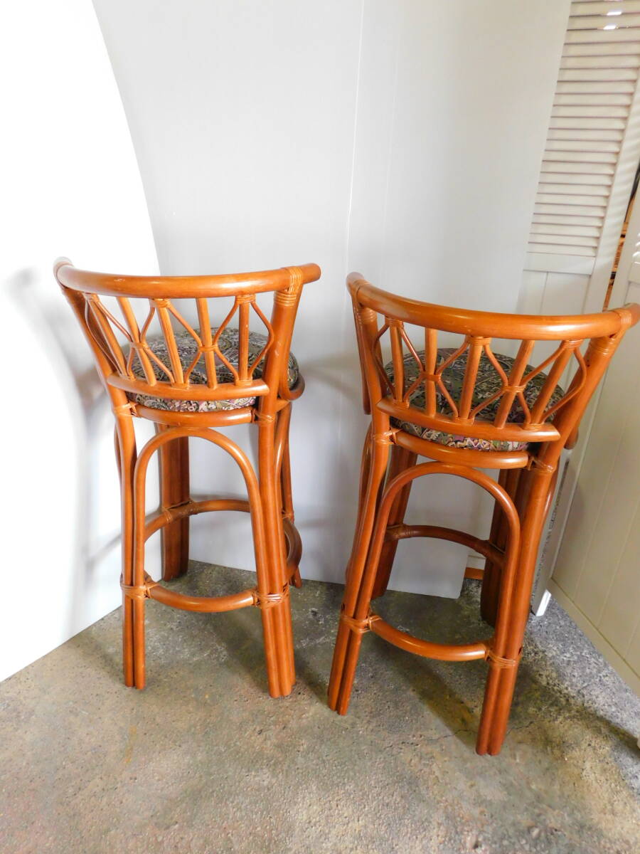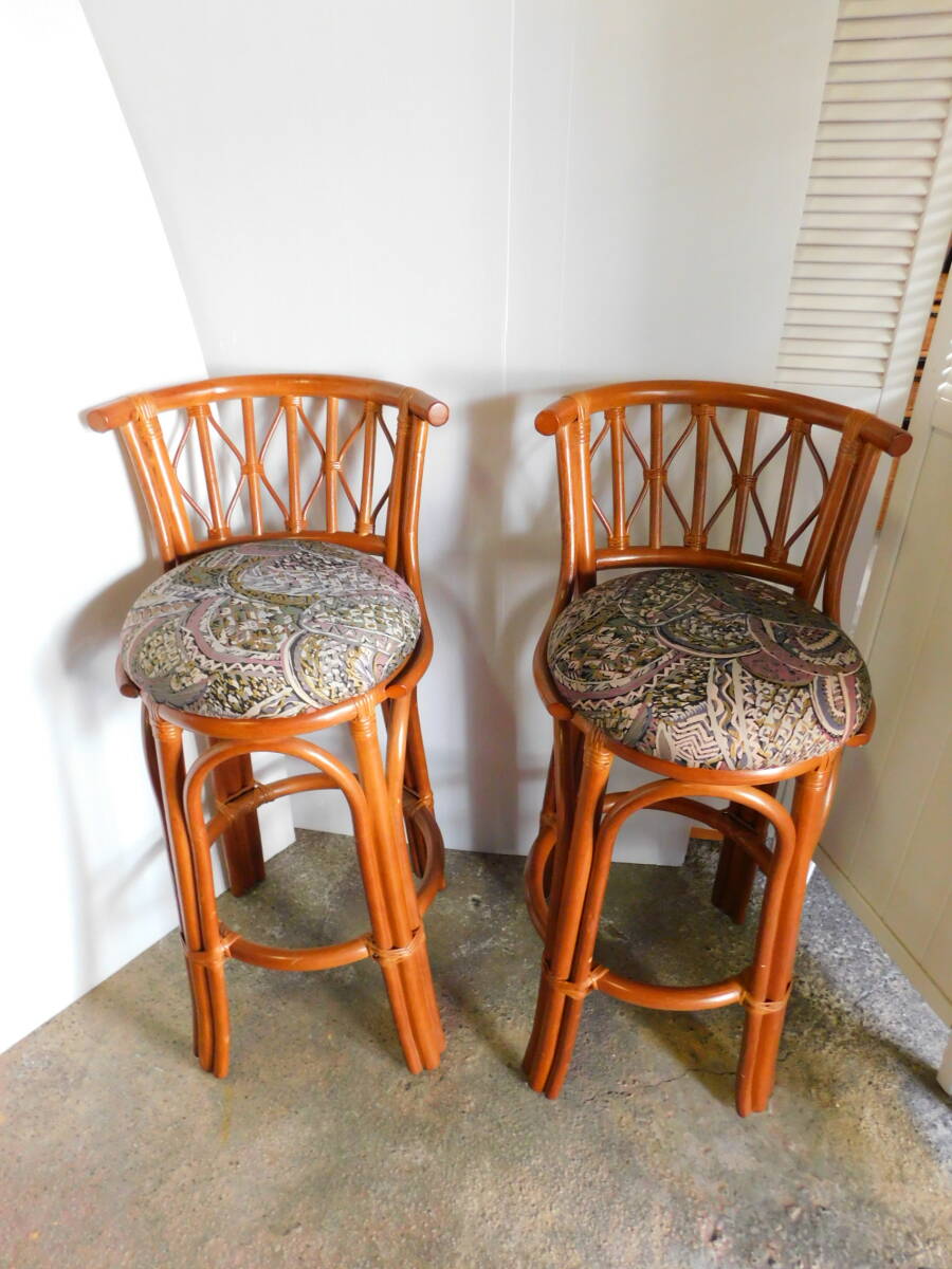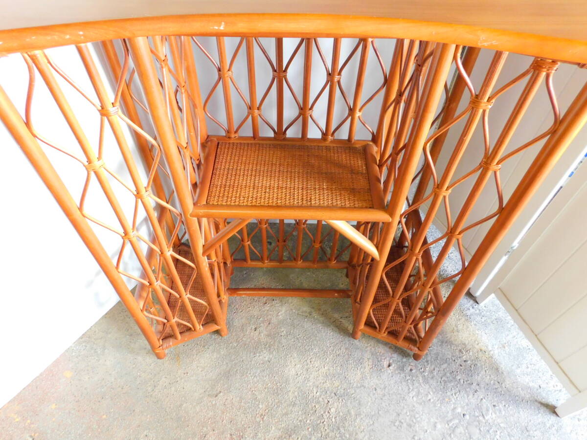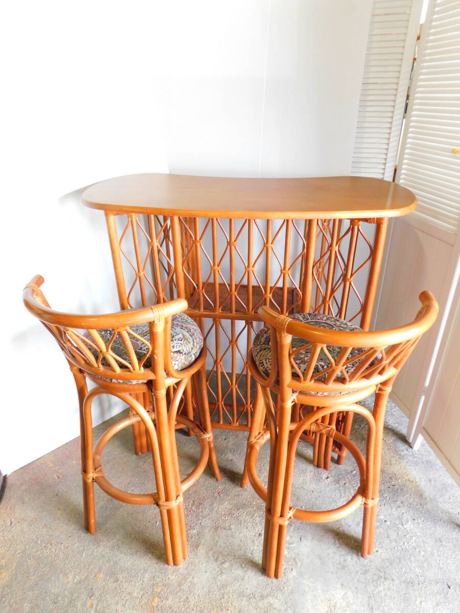 | m912 籐 ラタン カウンター 受付台 クッション付きイス2脚セット カウンターテーブル カウンターデスク カウンターチェア 2脚 | |