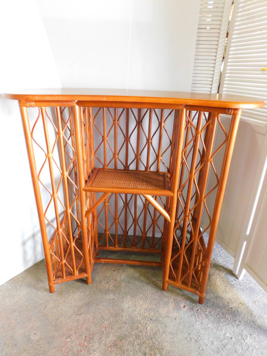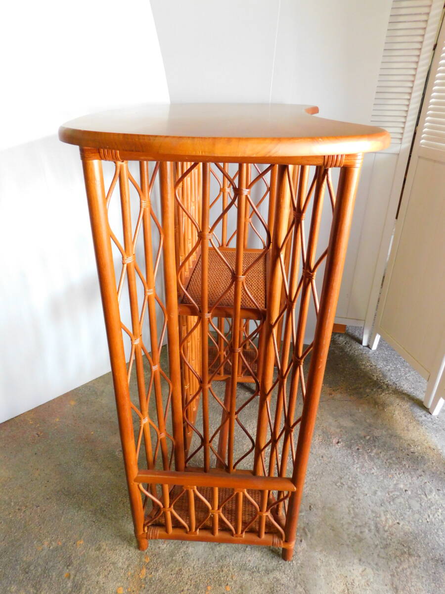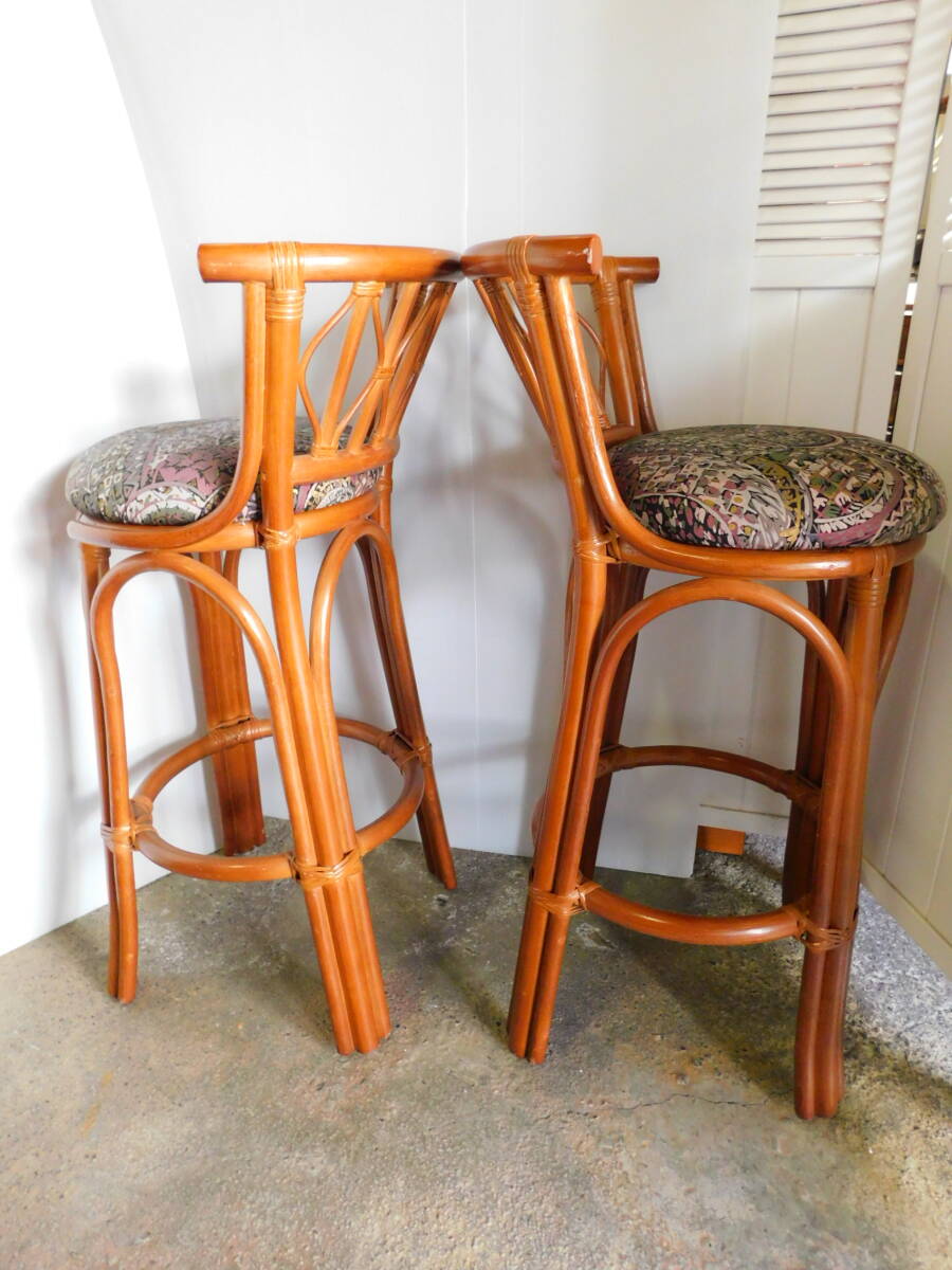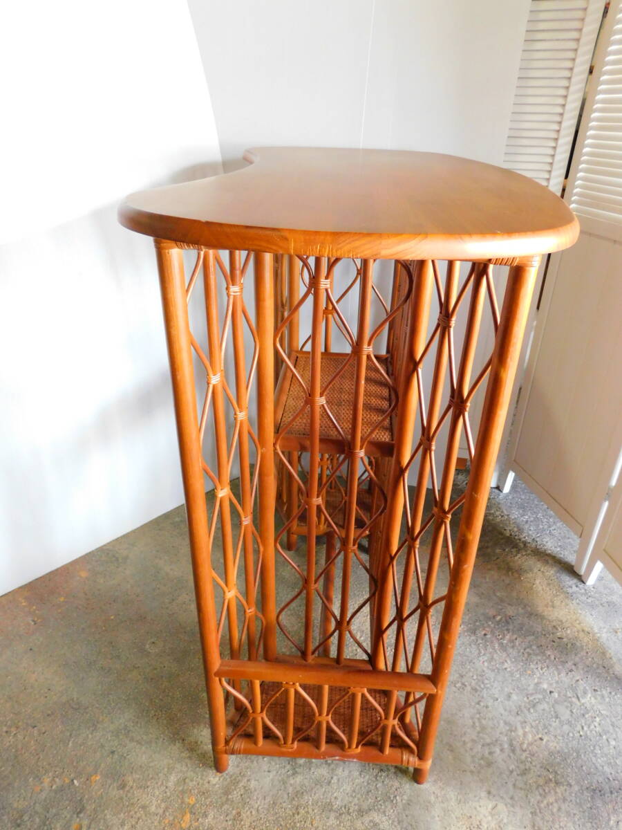| m912 籐 ラタン カウンター 受付台 クッション付きイス2脚セット カウンターテーブル カウンターデスク カウンターチェア 2脚 | |