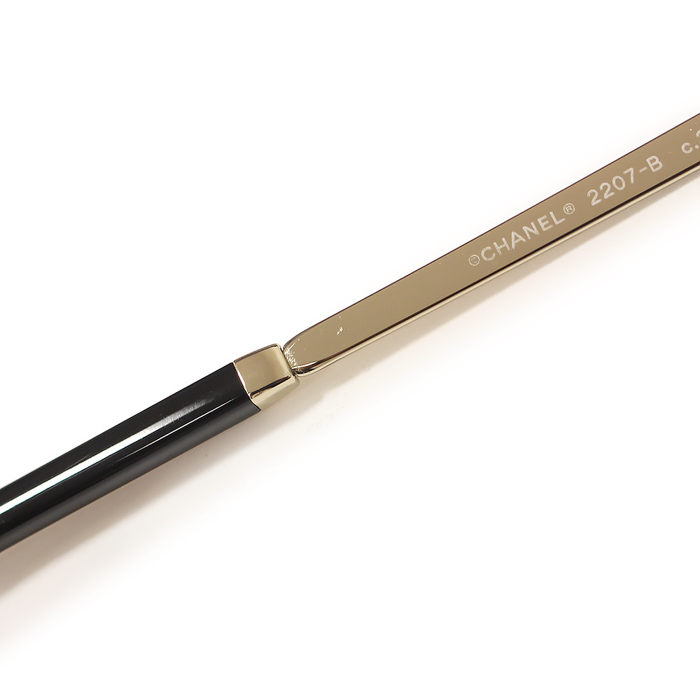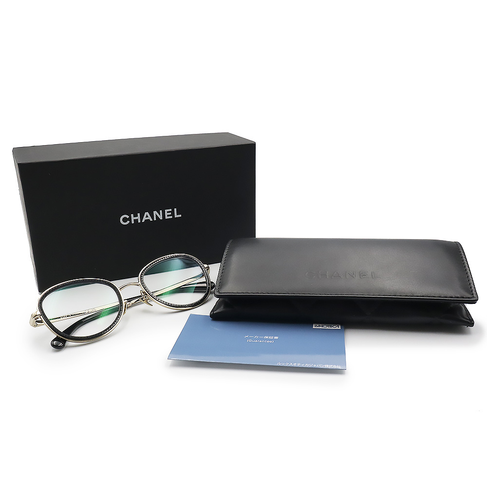 (中古)シャネル CHANEL ラインストーン メガネ 眼鏡 サングラス アイウェア メタル プラスチック ゴールド ブラック 黒 2207-B 箱付