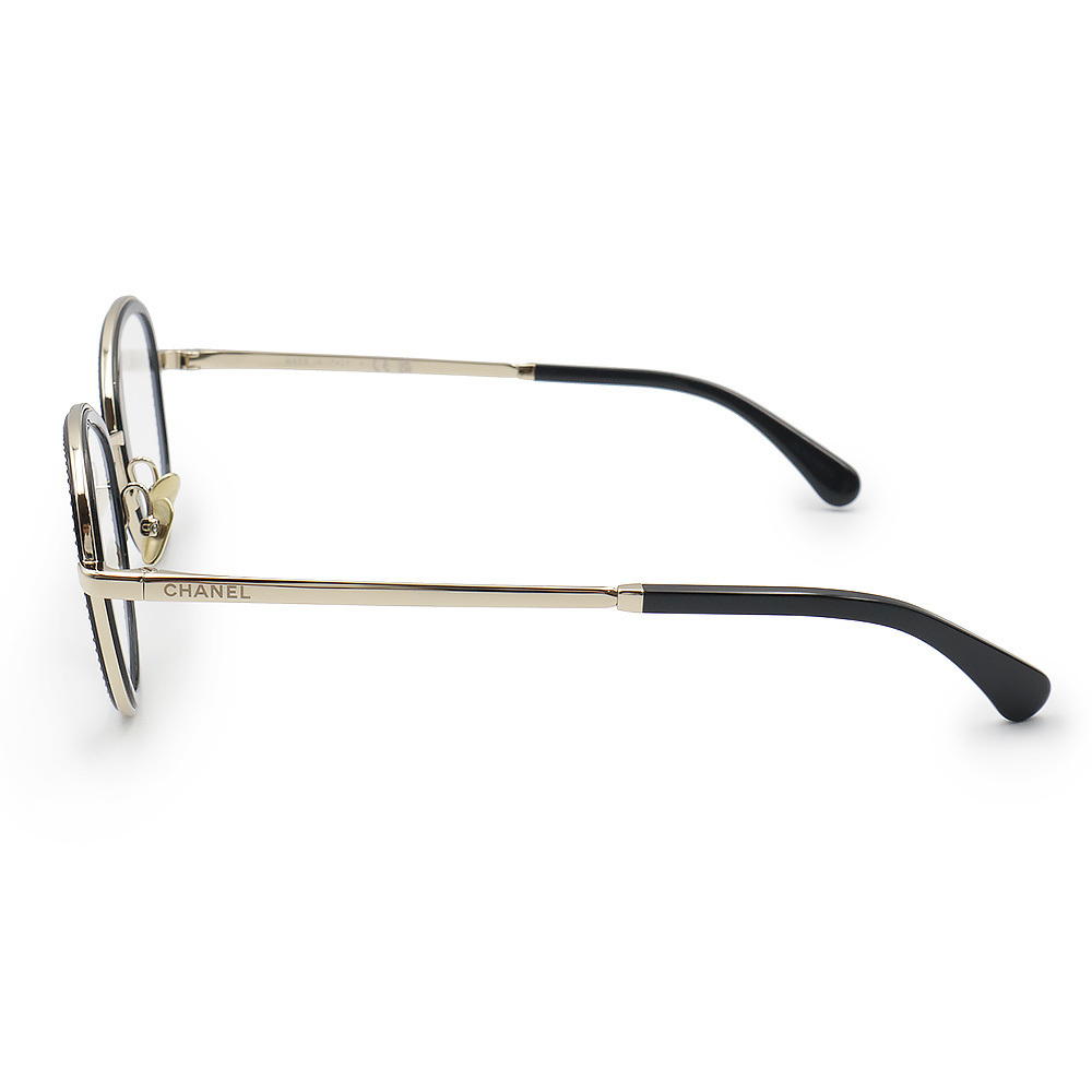 シンプルなデザインのCHANELアイウェア。フレームに装飾されたブラックラインストーンがさりげなく輝きます。クラシックなデザインにモダンなアクセントを加えています。