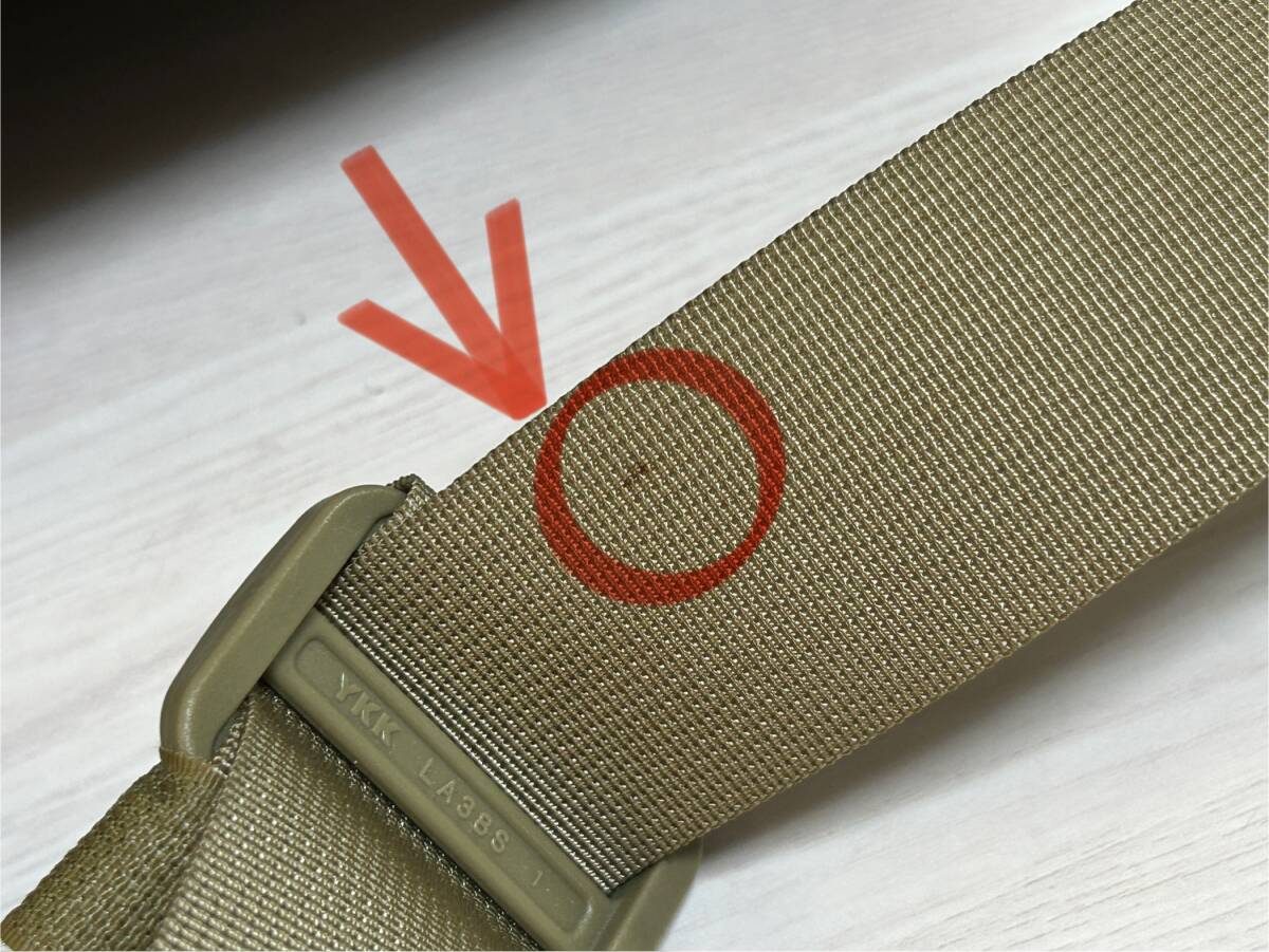 ベルトの裏側で、腰に巻けば見えない部分になります。