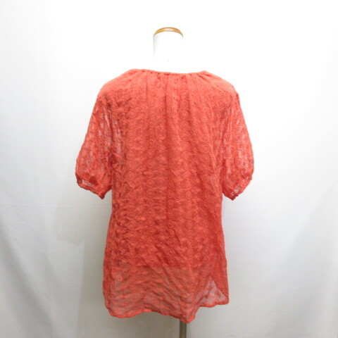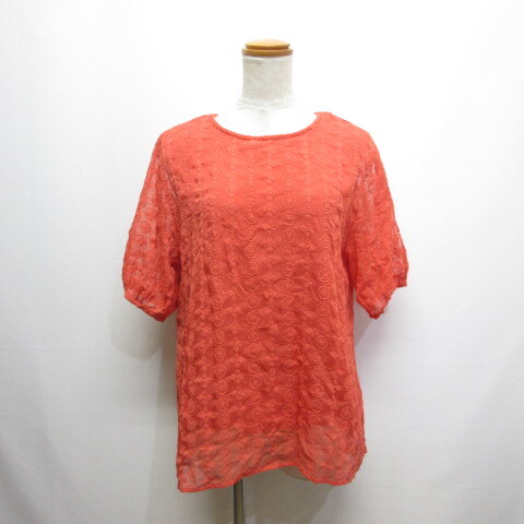 イディット IEDIT 五分袖 刺繍 カットソー ブラウス L オレンジ 裏地付き レディース