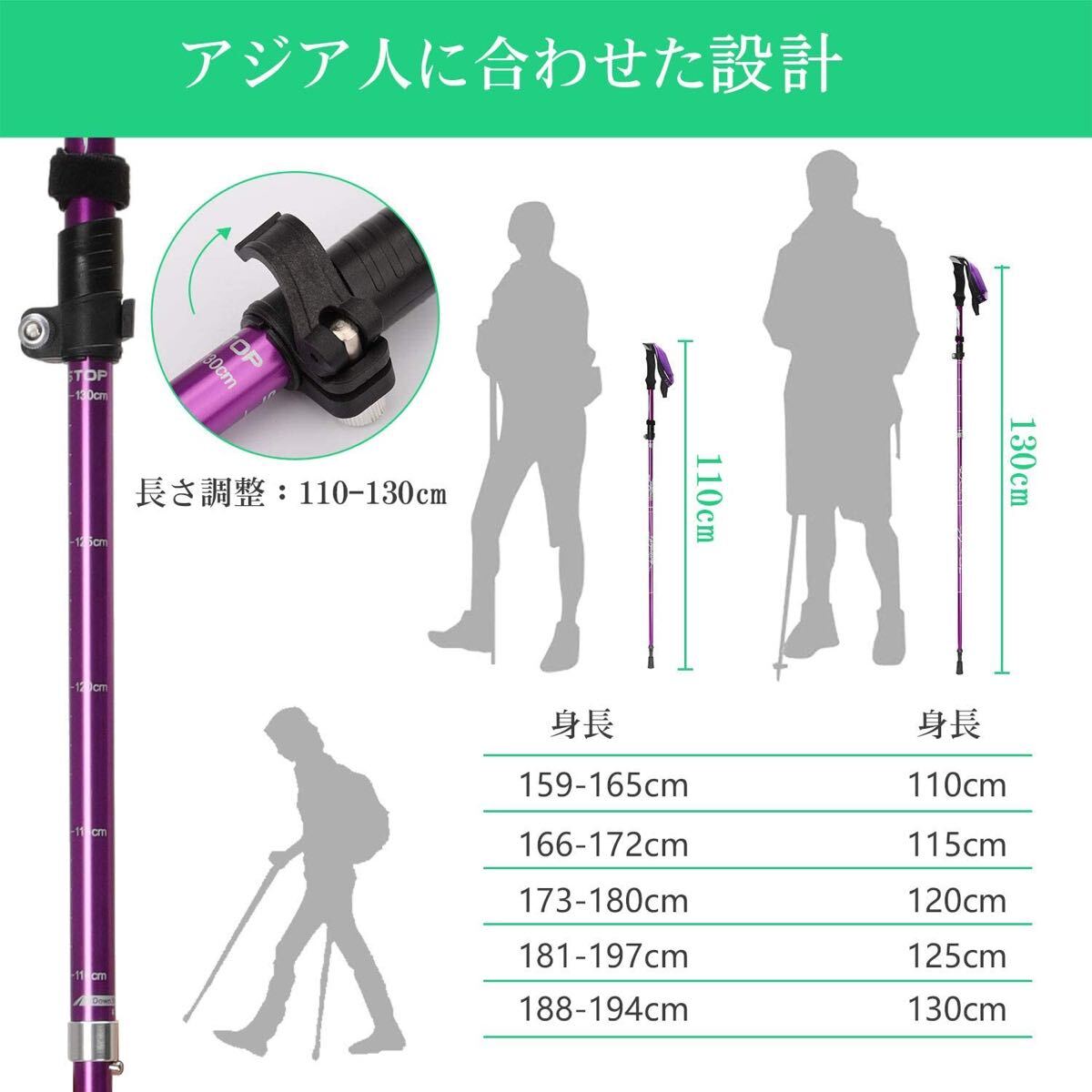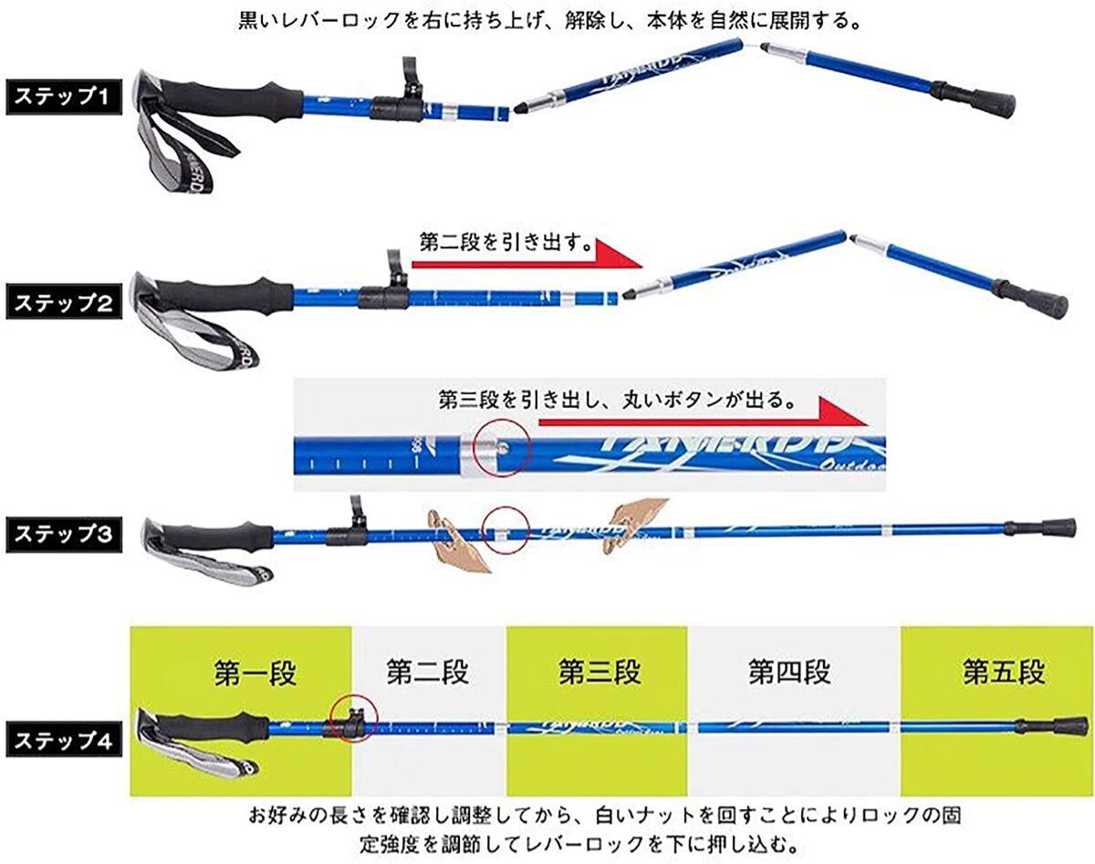* 【5段式伸縮機能】 5段伸縮機能を搭載しています、110cm〜130cmまで調整可能。収納サイズは35cmです。280gの軽さ、コンパクトで非常に携帯便利です。