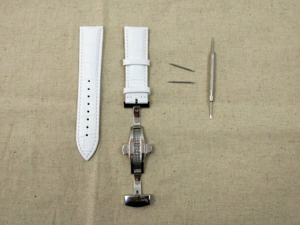 腕時計ベルト 22mmのスプリングバーを使用する従来型またはスマートウォッチと互換性があります。 時計の幅に注意して入札してください。 サイズ:約22mm(幅) 素材:本革レザー 写真4枚目のものが商品となります。バネ棒、バネ棒外しも含まれます。時計は含まれません。 ※DM便での発送のため、パッケージは外した状態でお送りします。 ※時計は使用イメージです。付属しません。 |