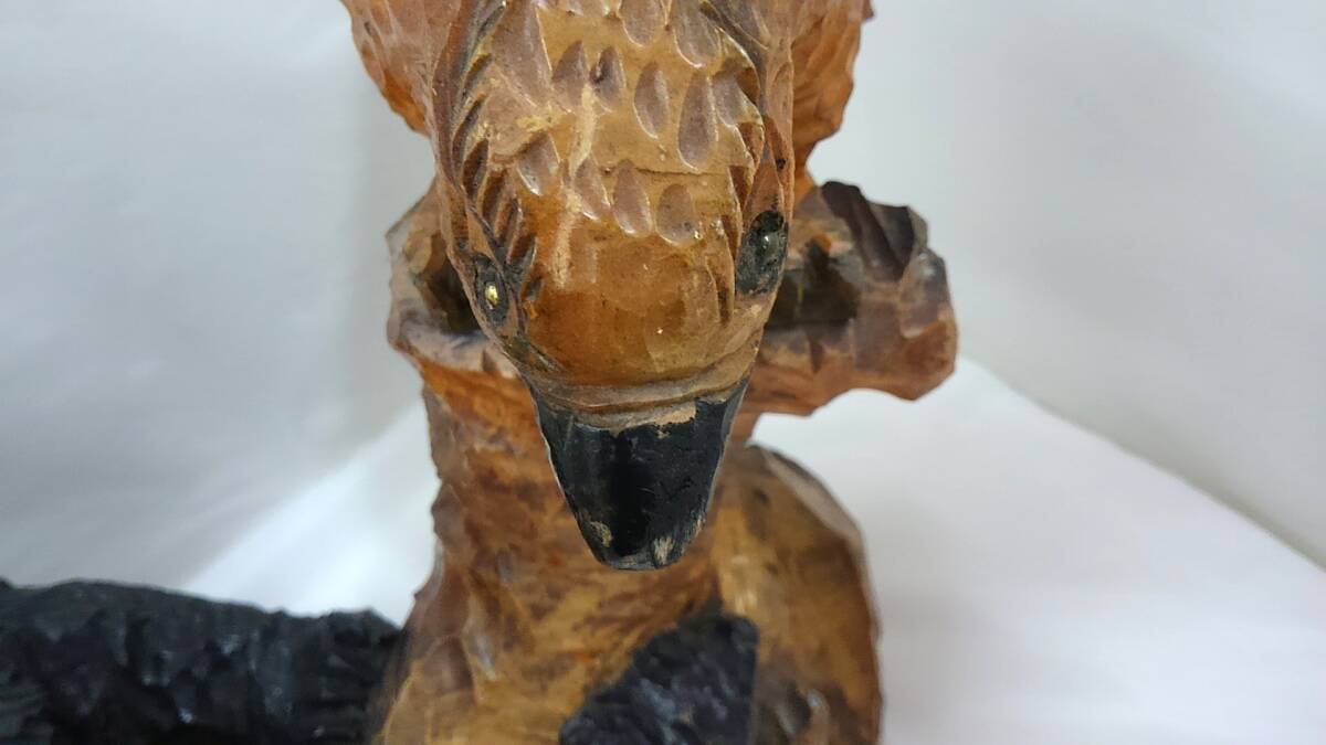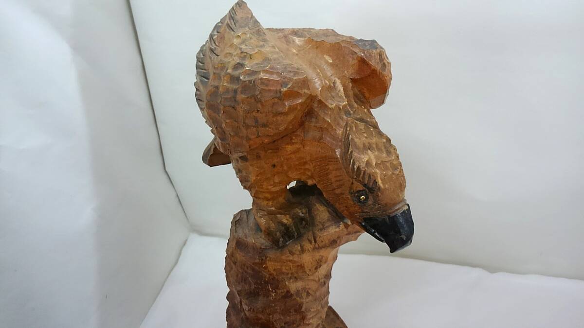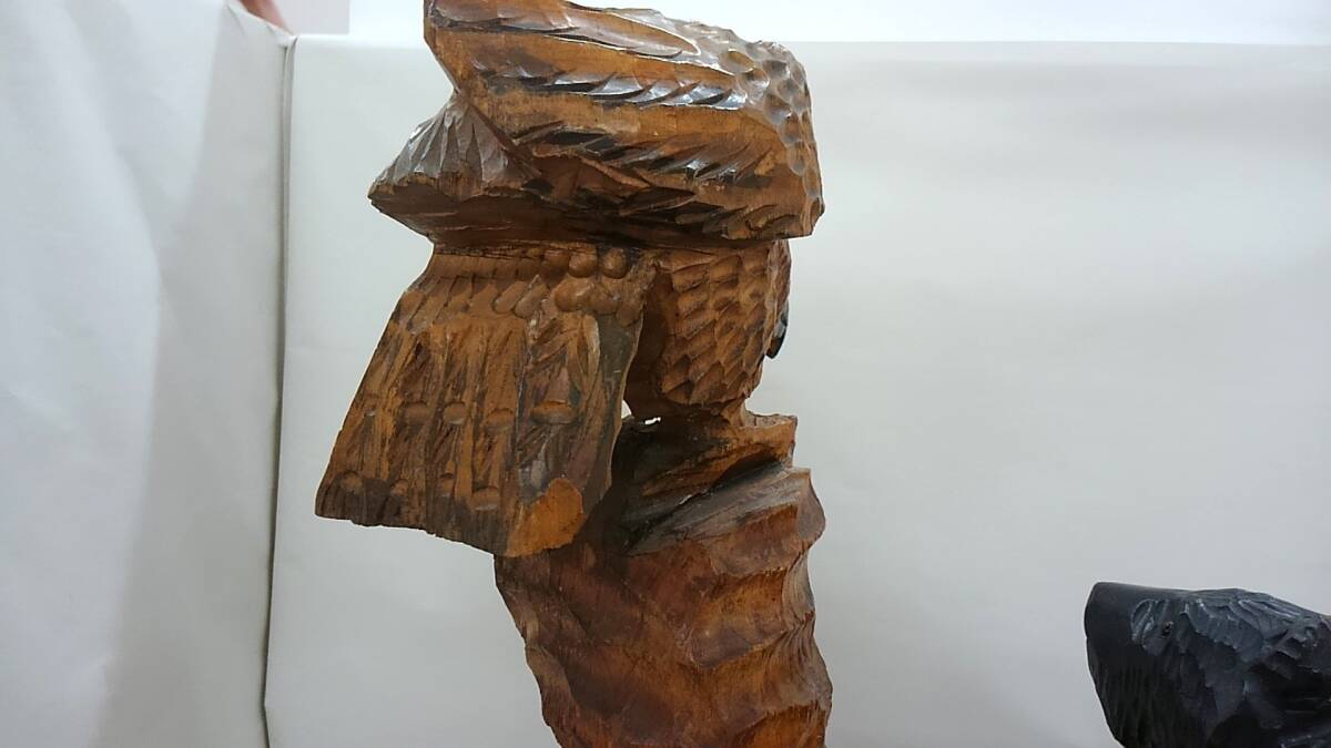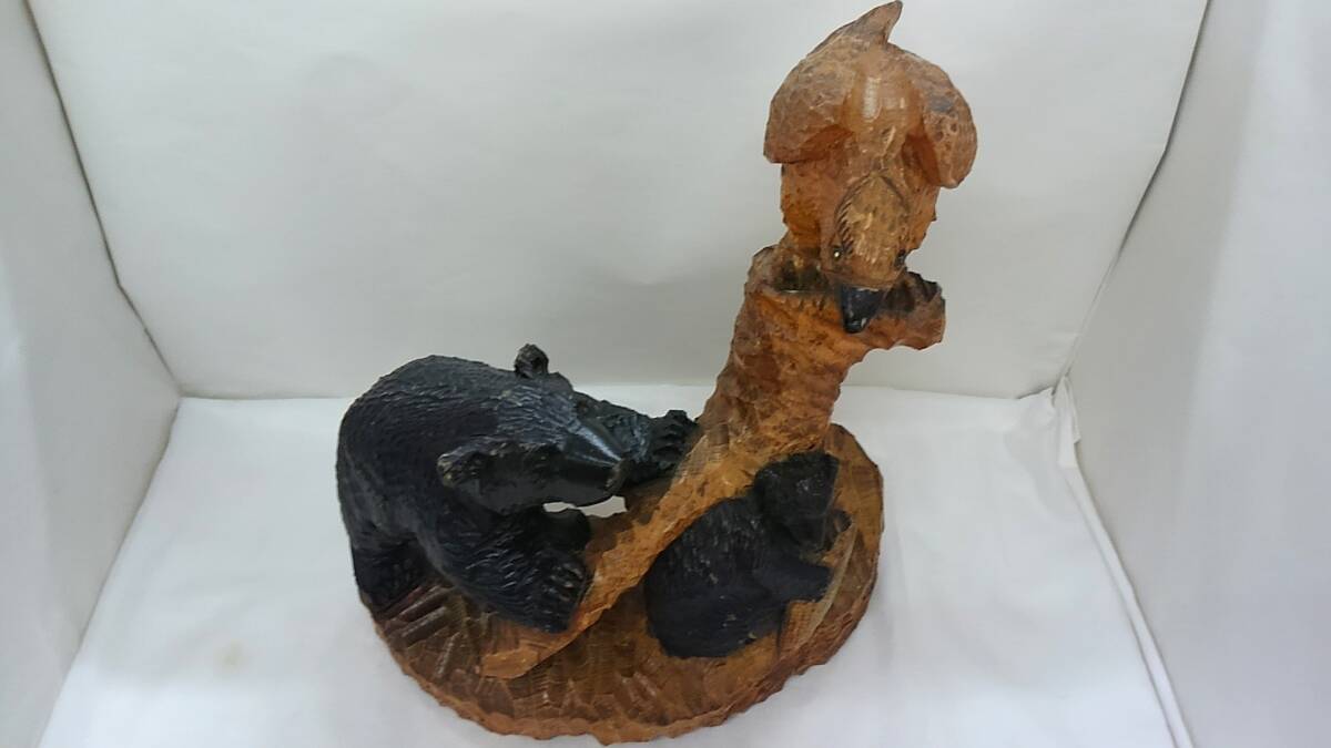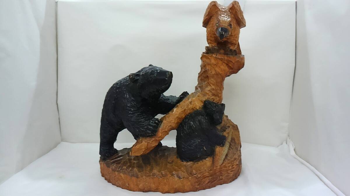 委託の長期保管品です。 サインがない為詳細は不明ですが、親子熊、鷲、鮭が彫られた珍しい作品です。 大きな破損は見られませんが、スレ、欠け、キズ、色のハゲ等が見られます。 鷲の目に着色のような跡が見られます。 詳しい状態などは画像でご確認ください。 親子熊、鷲、鮭が彫られた木彫り熊です。 当社の商品につきましては中古品(または中古扱い)のため 下記の注意事項を合わせてご確認ください。 ※委託品のため詳細が分からない商品もございます。 ※商品説明に明記しておりますが、使用感がある場合がございます。 ※委託品・長期保管品のため、新品・未開封品であっても微細なキズや汚れがある場合がございます。 ※家電は動作確認済みですが全ての機能の長時間動作確認はしておりません。 ※工具や調理器具の実際の作業、調理等での確認はしておりません。 ※商品の写真はなるべく実物に近いものを選んでいますが、PC環境により映り具合や色合いなど見え方が異なる場合もございます。 ※現状でのお渡しのため、商品の状態などの理由による返品、ご返金には応じかねますのでご了承ください。 ※商品が小さな部品、電池等を含む場合は誤飲防止のため、小さなお子様の手の届かないところでのご使用及び保管をお願いいたします。 気になることがありましたらお気軽にご質問ください。 | ||||||||