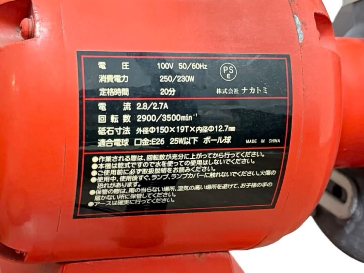 動作品 ナカトミ ランプ付ダブルグラインダー 両頭グラインダー 研磨機 ライト搭載 電動工具 100V 50/60Hz RG-150 中古品