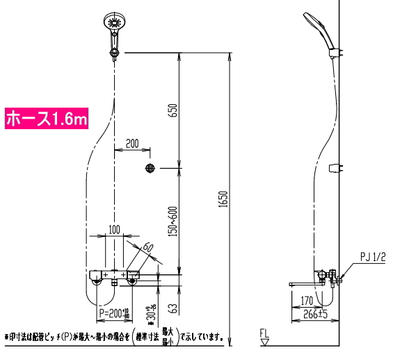 メタル調シルバーホース1.6m(樹脂製防カビホース)