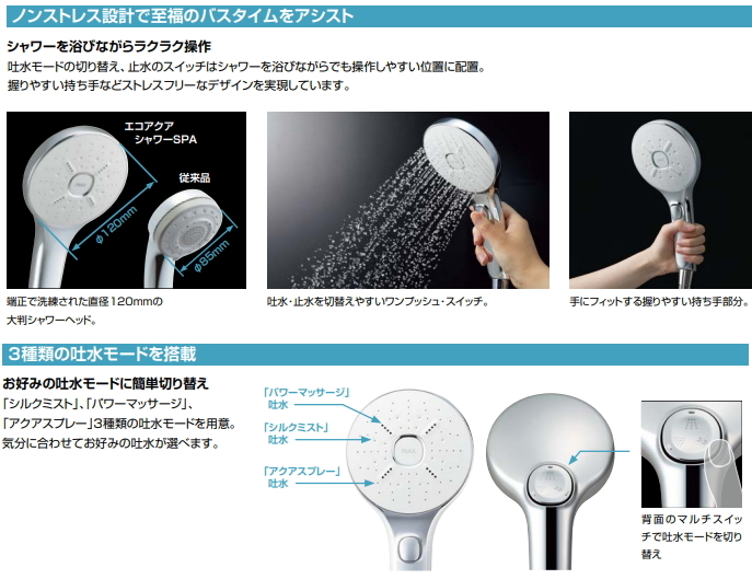 エコアクアシャワーSPA付サーモスタットシャワーバス水栓