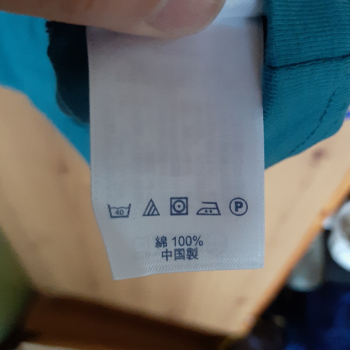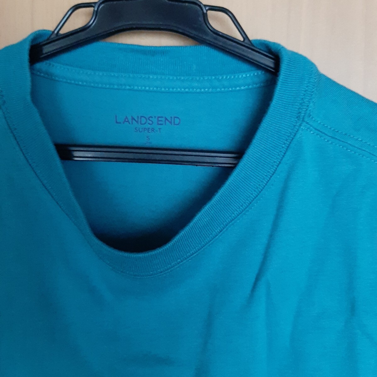 ターコイズの綿100%半袖Tシャツ、Lands' End製。