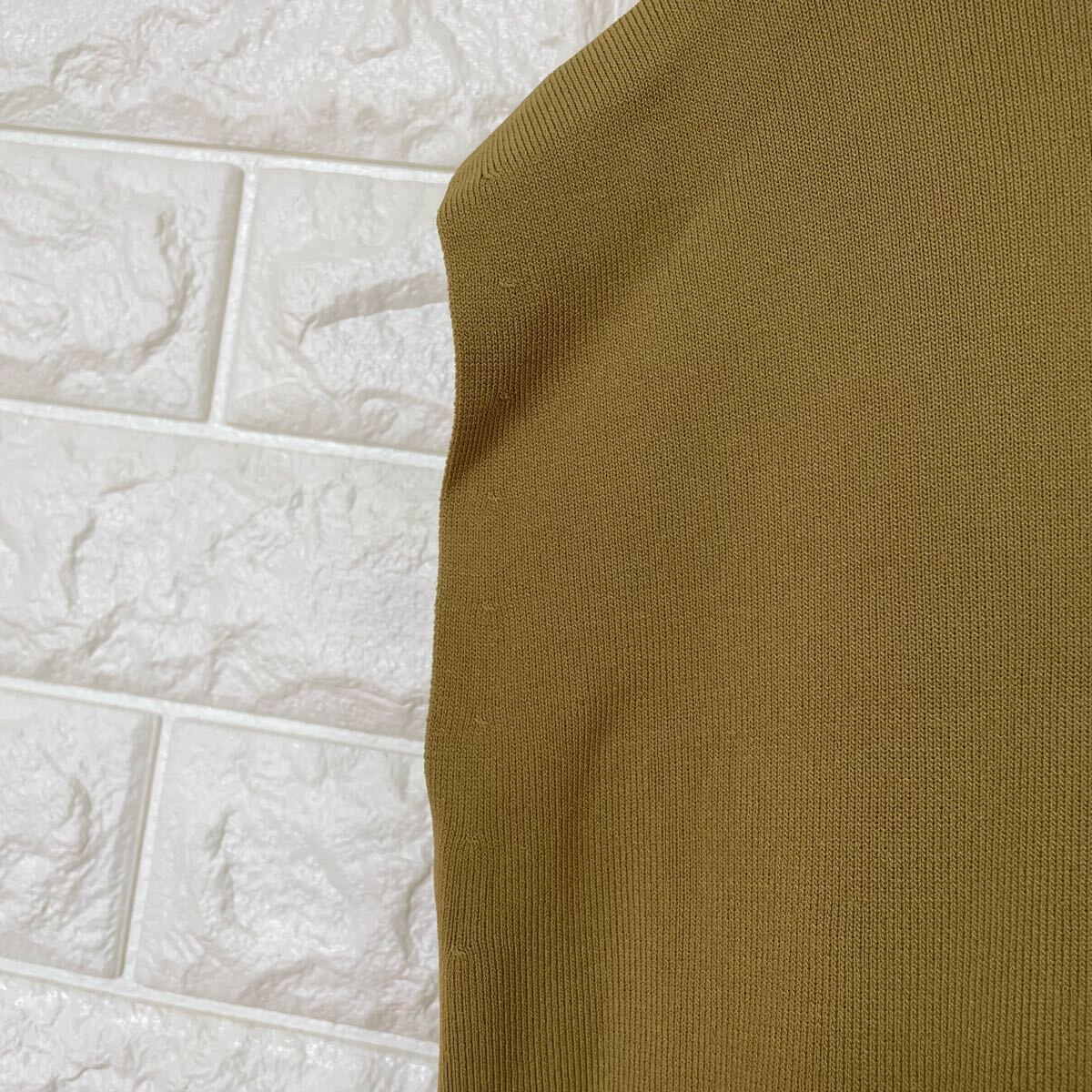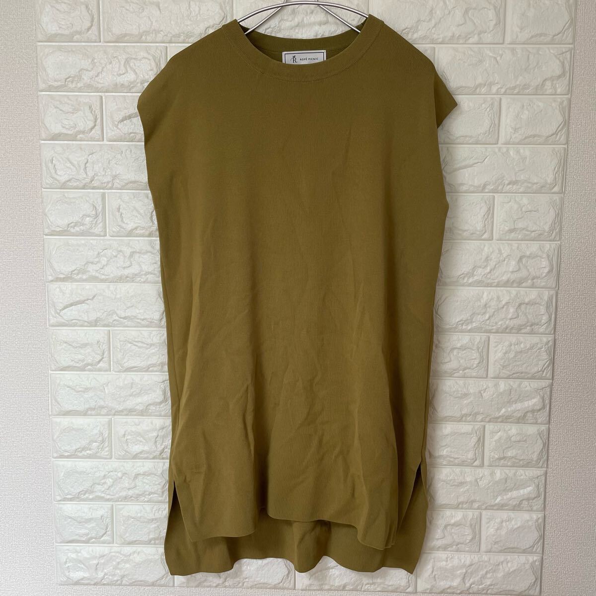 オリーブカラーのノースリーブで、サイドスリットデザインが特徴的なトップス。