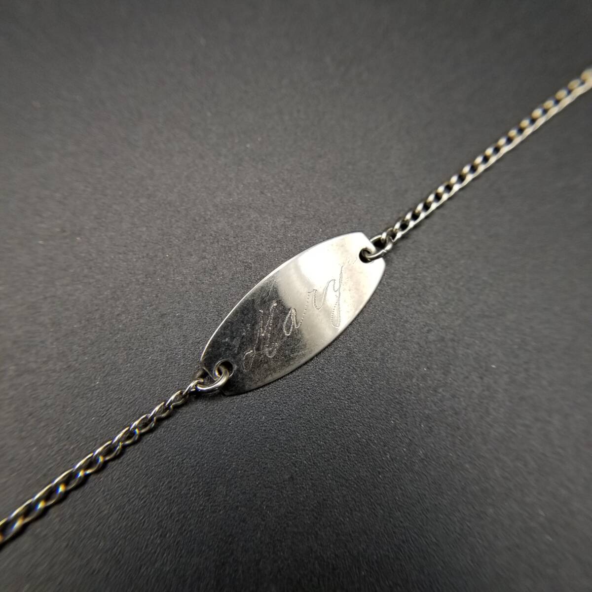 IDタグ オーバルプレート  クラシック ヴィンテージ ブレスレット 華奢バンド シルバープレート ネーム彫金 May/Rizzo Y23-M