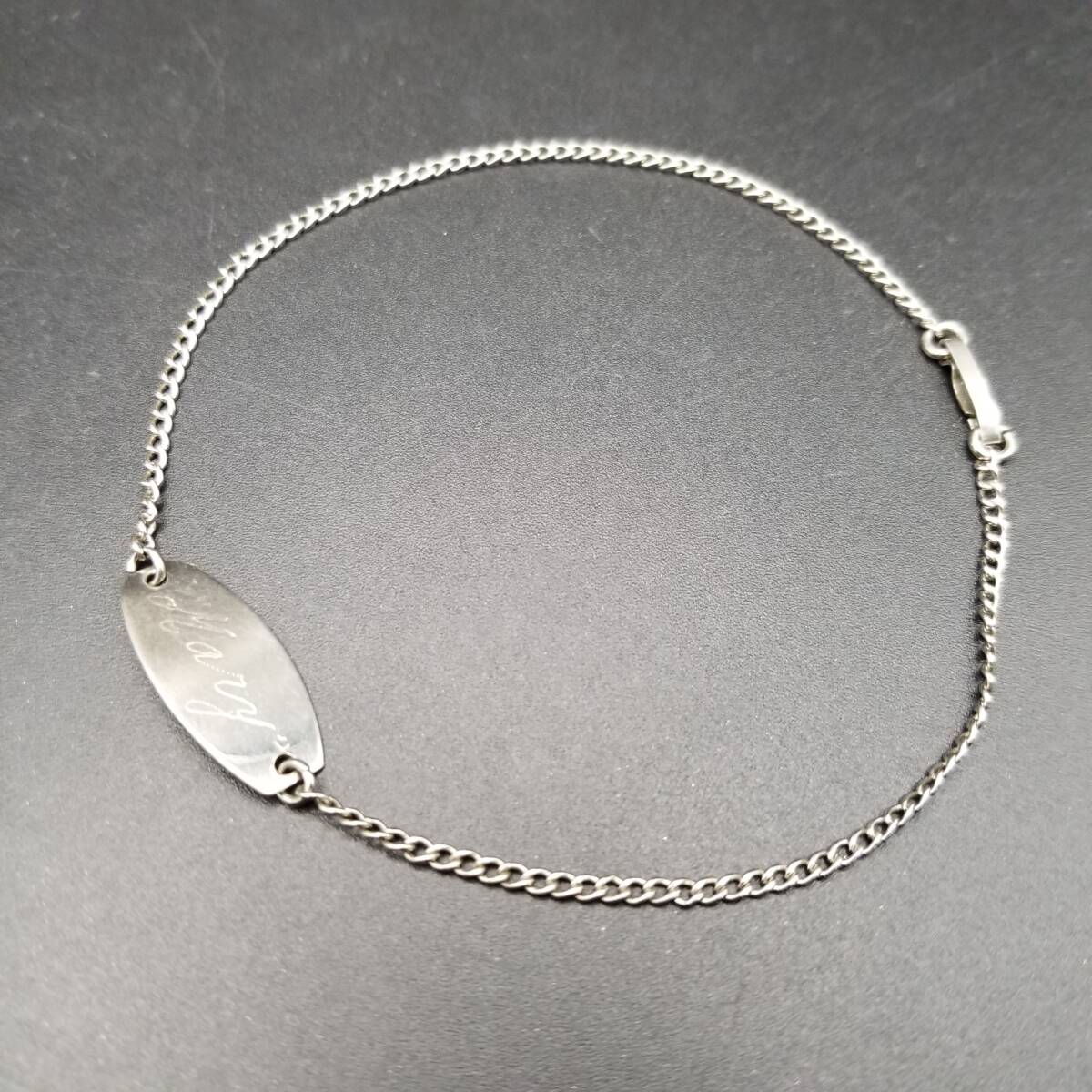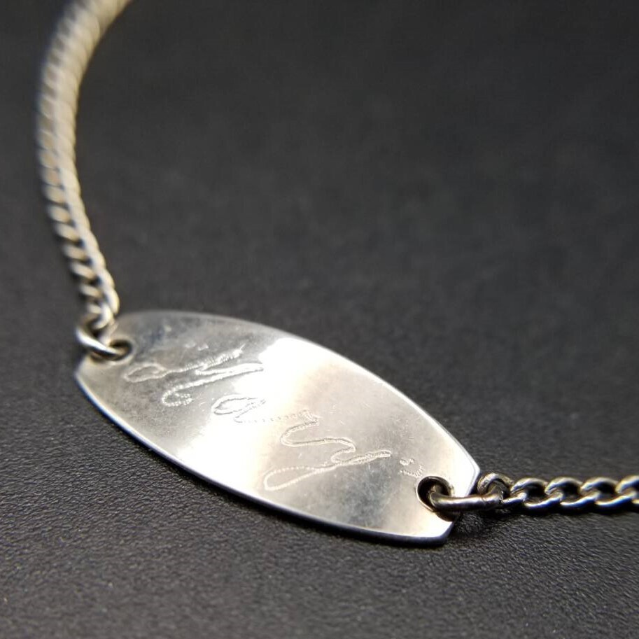 IDタグ オーバルプレート クラシック ヴィンテージ ブレスレット 華奢バンド シルバープレート ネーム彫金 May/Rizzo Y23-M