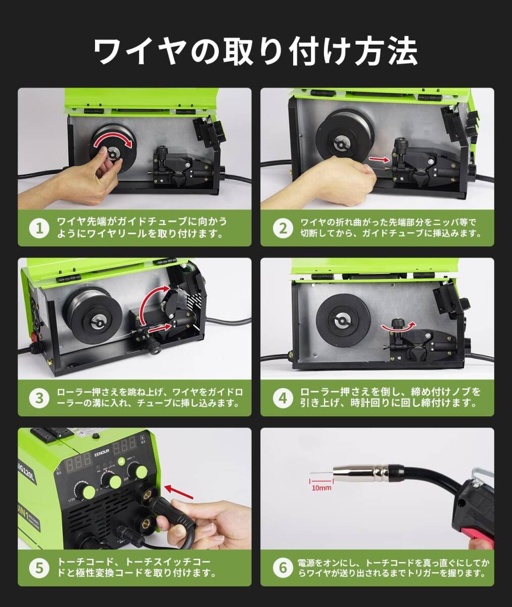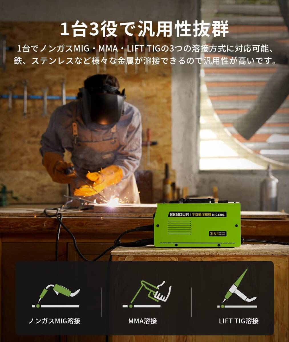 【送料無料】新品 EENOUR 半自動溶接機 MIG120L 最大120A 1台3役 ノンガスMIG MMA LIFT TIGアーク溶接 液晶表示 インバーター搭載 100V専用