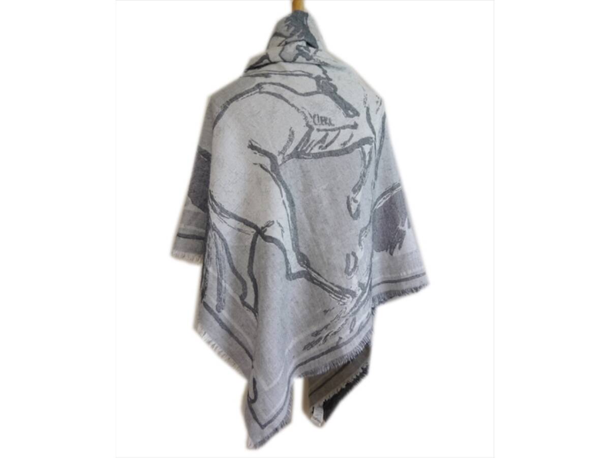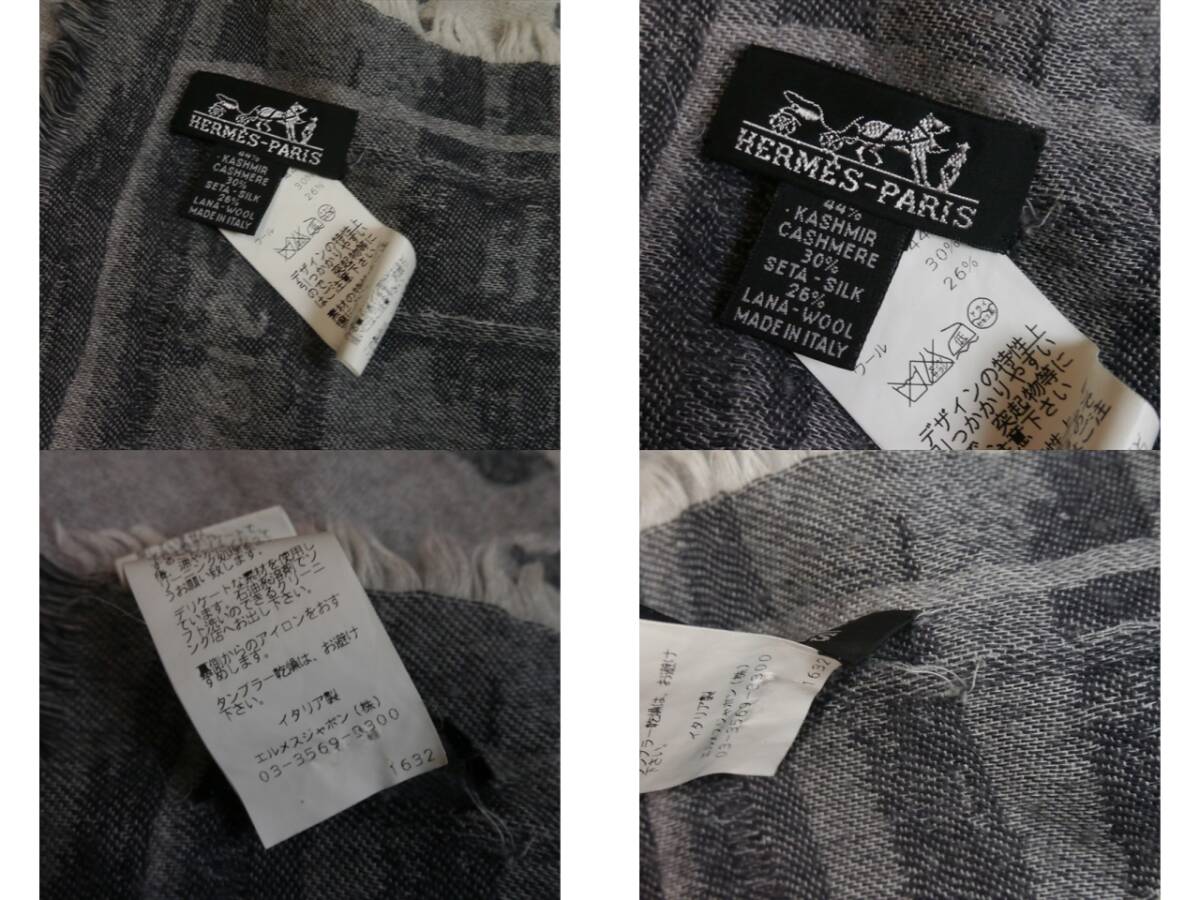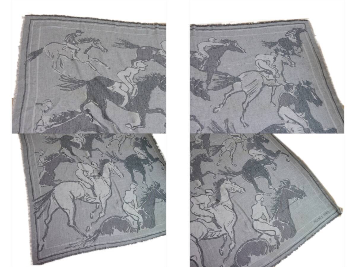 エルメス スカーフ ストール マフラー 馬 ホース フリンジ ブランケット グレー カシミヤ シルク ウール