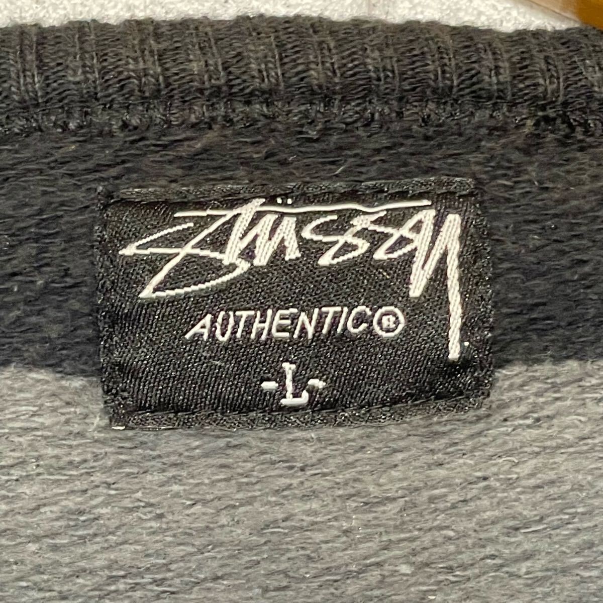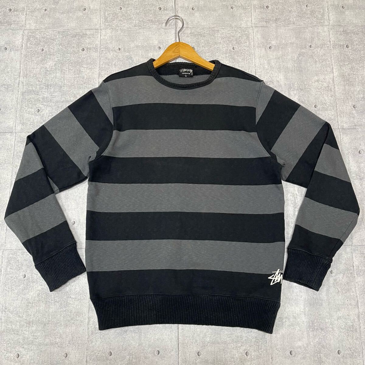 STUSSY ボーダー ストライプ スウェット トレーナー ステューシー  ブラック×グレー ストリート スケート サーフ SOCAL 早5480 サブカル しっかりした上質素材