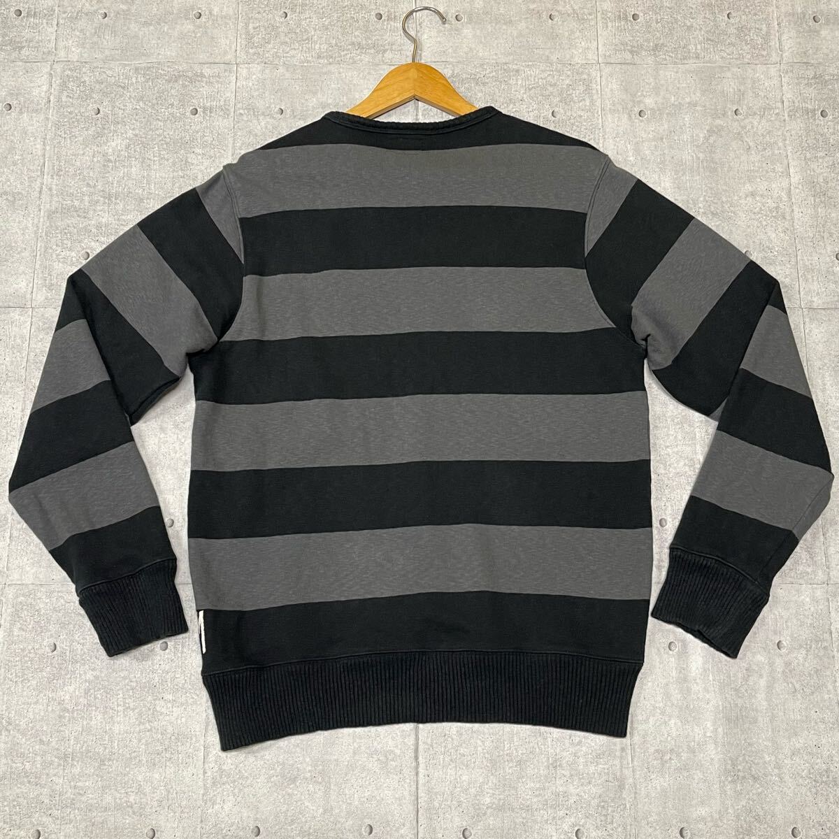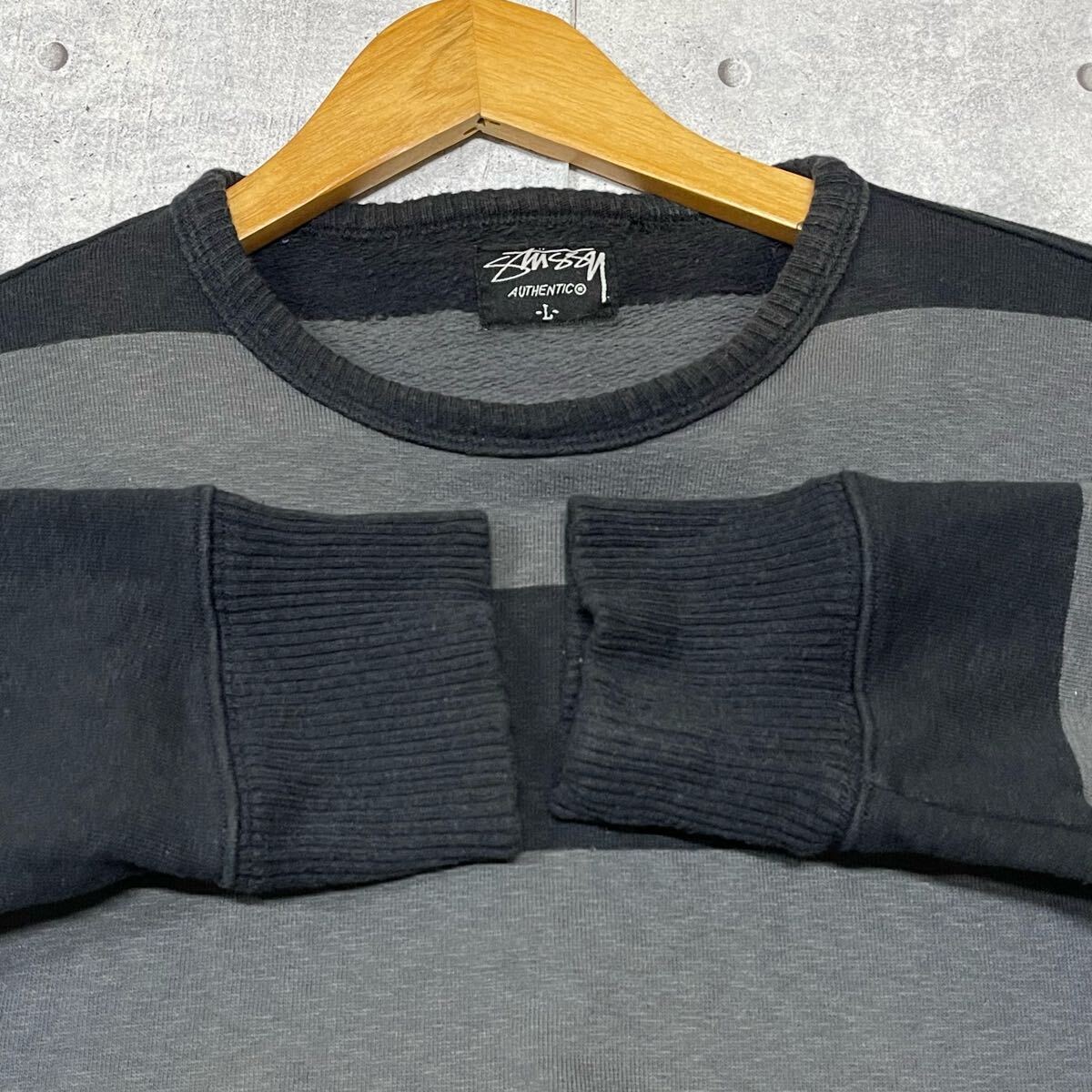 STUSSY ボーダー ストライプ スウェット トレーナー ステューシー  ブラック×グレー ストリート スケート サーフ SOCAL 早5480