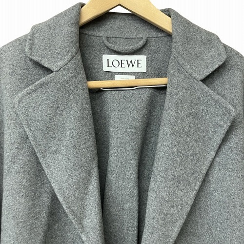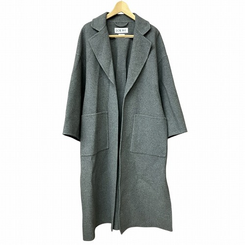 ロエベ LOEWE カシミヤ混 ロング ベルト コート 灰 グレー XS 17153352101 ■GY41 レディース