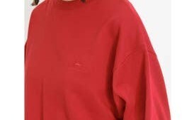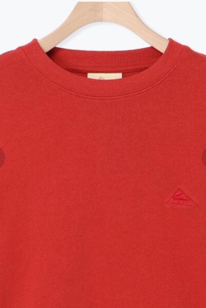 胸のロゴ刺しゅうがワンポイントであしらわれたスウェット。