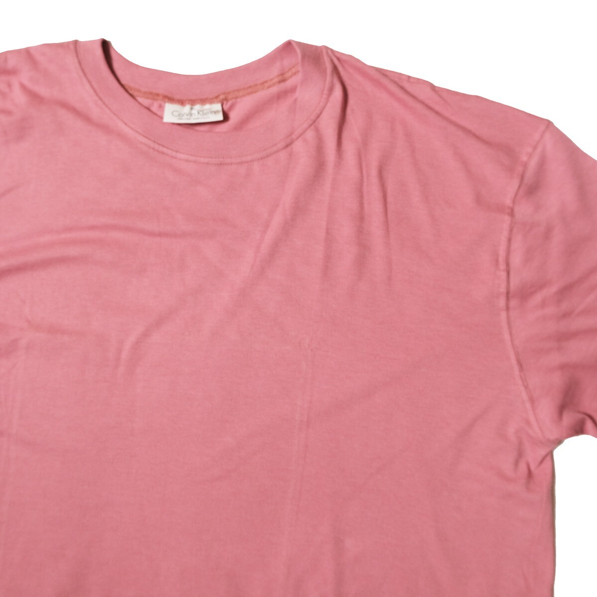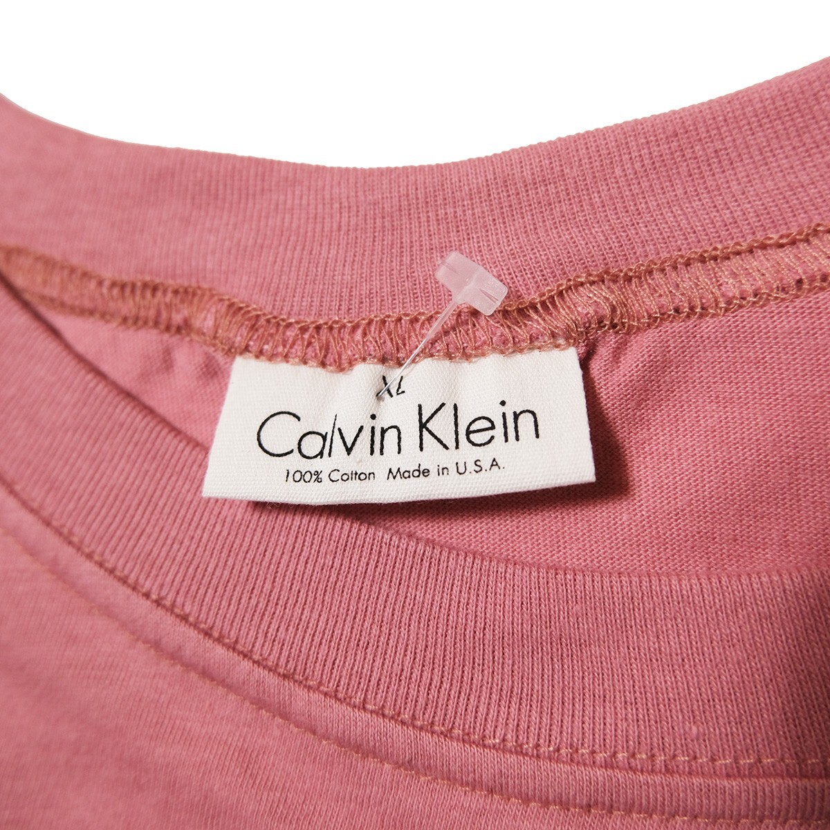 デッドストック 90's USA製 カルバンクライン CK クルーネック コットン Tシャツ (XL) サーモンピンク系 無地 シングルステッチ 未使用品