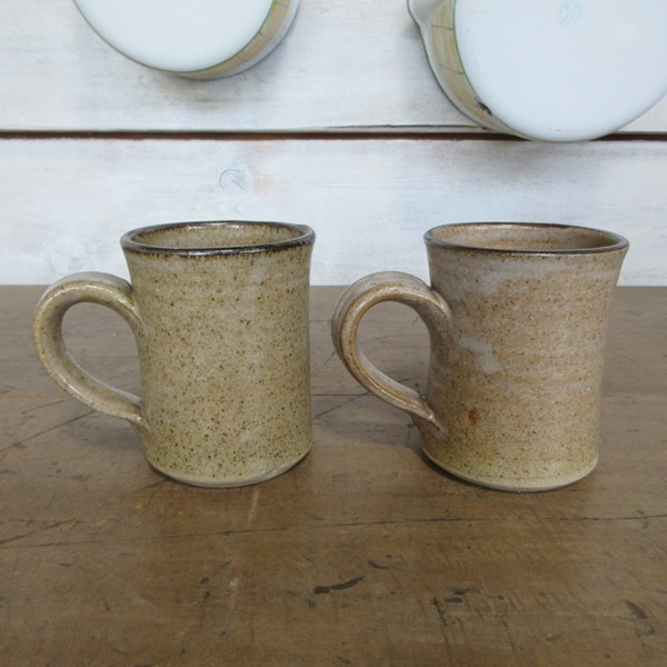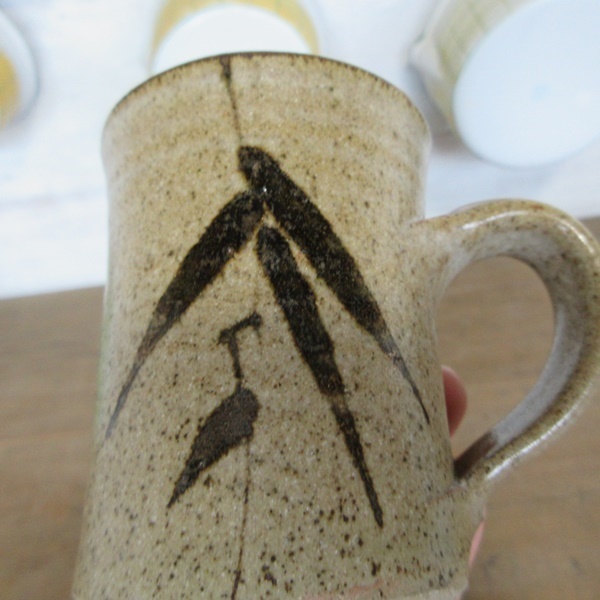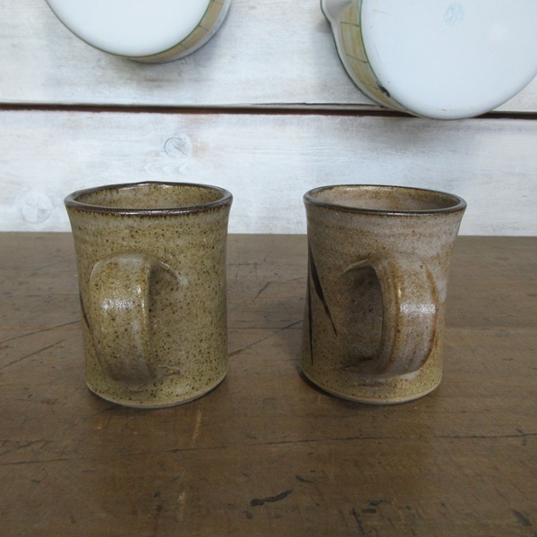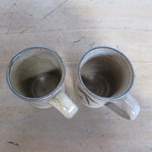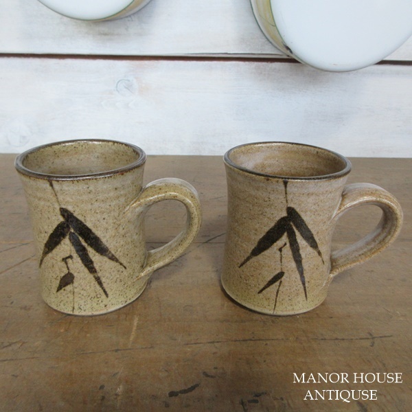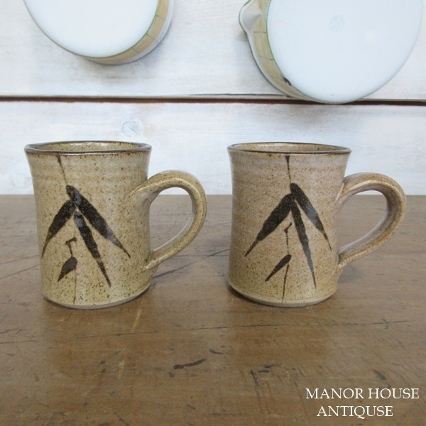 イギリス キッチン雑貨 素朴な雰囲気の ペア マグカップ ストーンウェア 葉模様 茶器 英国 tableware 1531sc