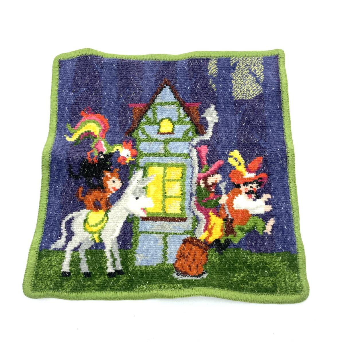 タオルハンカチ ブレーメンの音楽隊 縁ライトグリーン Love at first touch